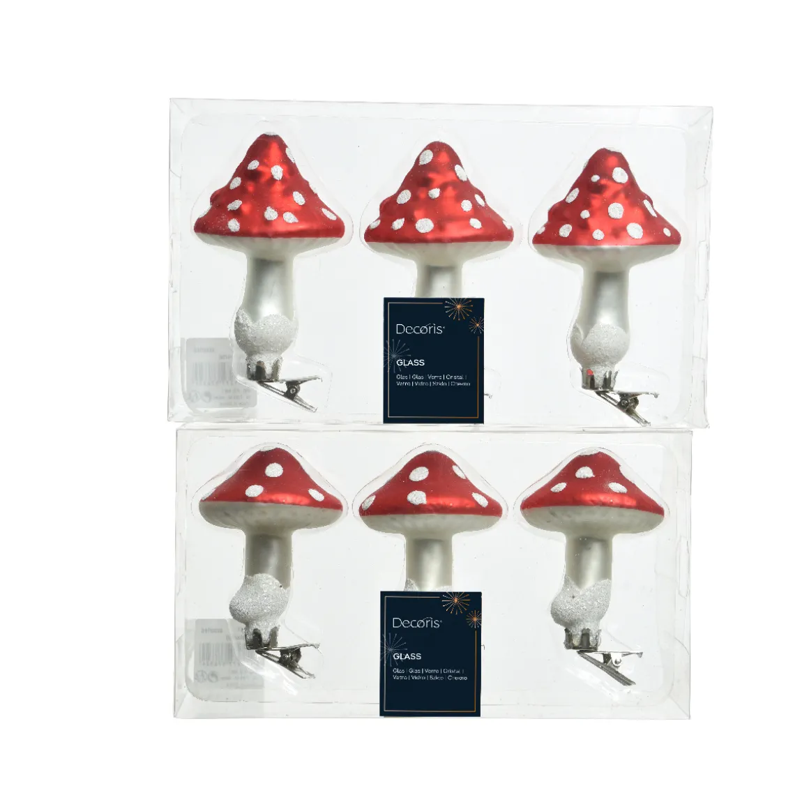 Baumschmuck Fliegenpilze, Glas-Pilze auf Clip, 3 St/Box, 9cm