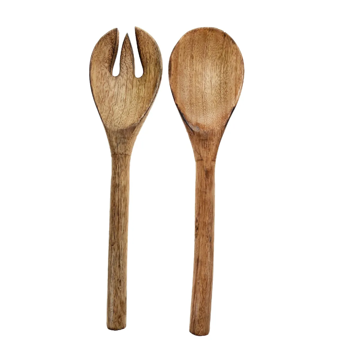 Deko Besteck Set, Holzbesteck Gabel und Löffel, Salatbesteck aus Mangoholz, 25cm