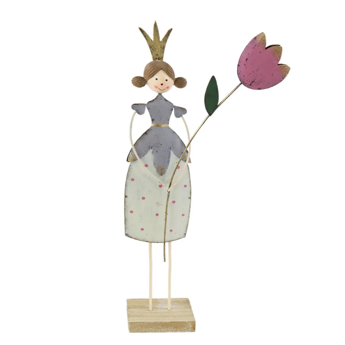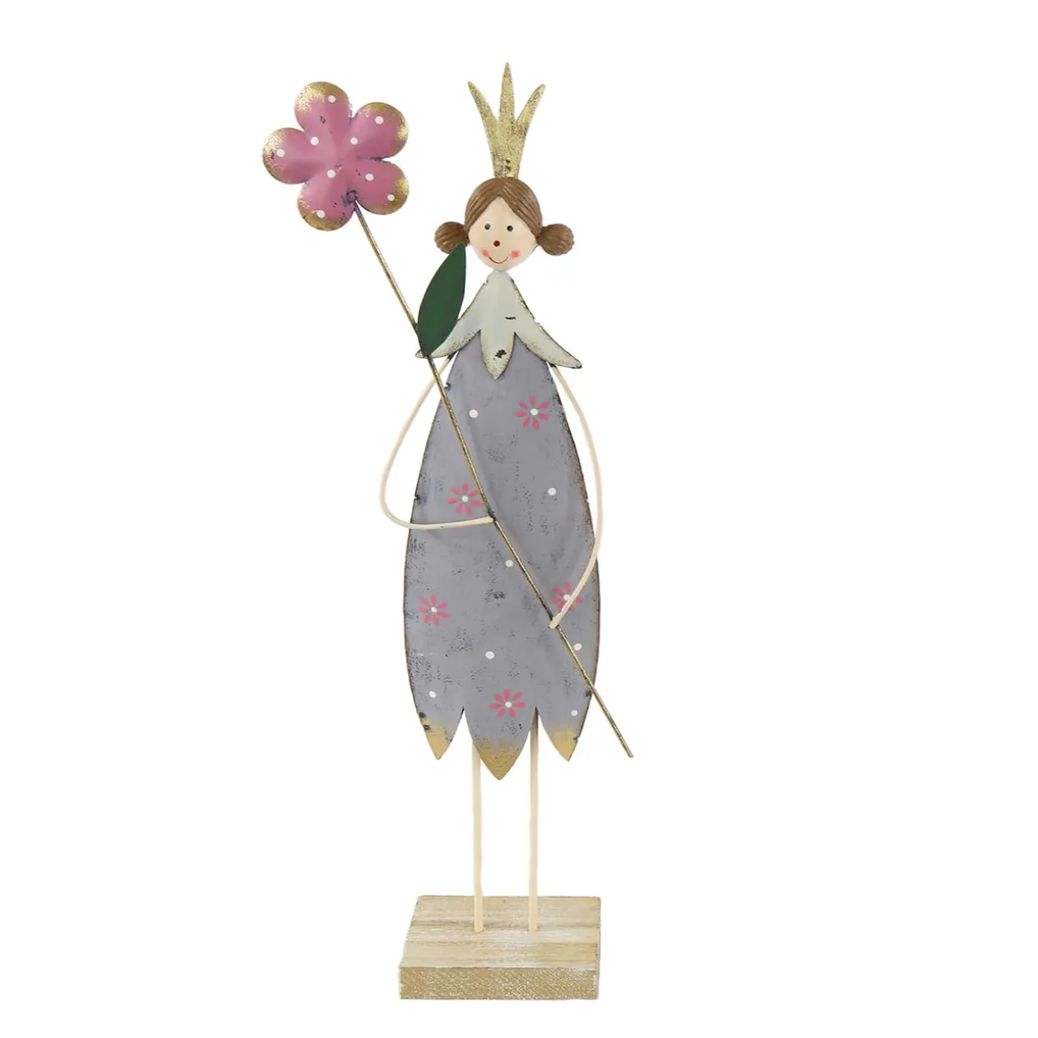 Produktinformationen „Deko Blumenmädchen mit Blume, Blumenkönigin creme und grau, 36x12cm, Metall, Set/2“