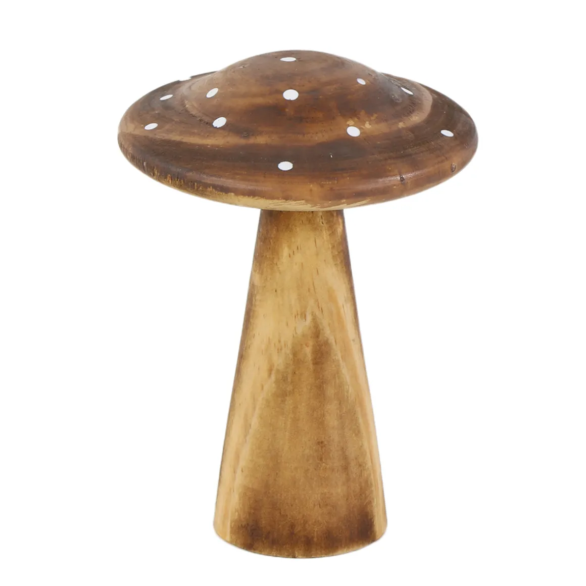 Deko Fliegenpilz, Holzpilz braun, flacher Hut, 7x10cm, Holz