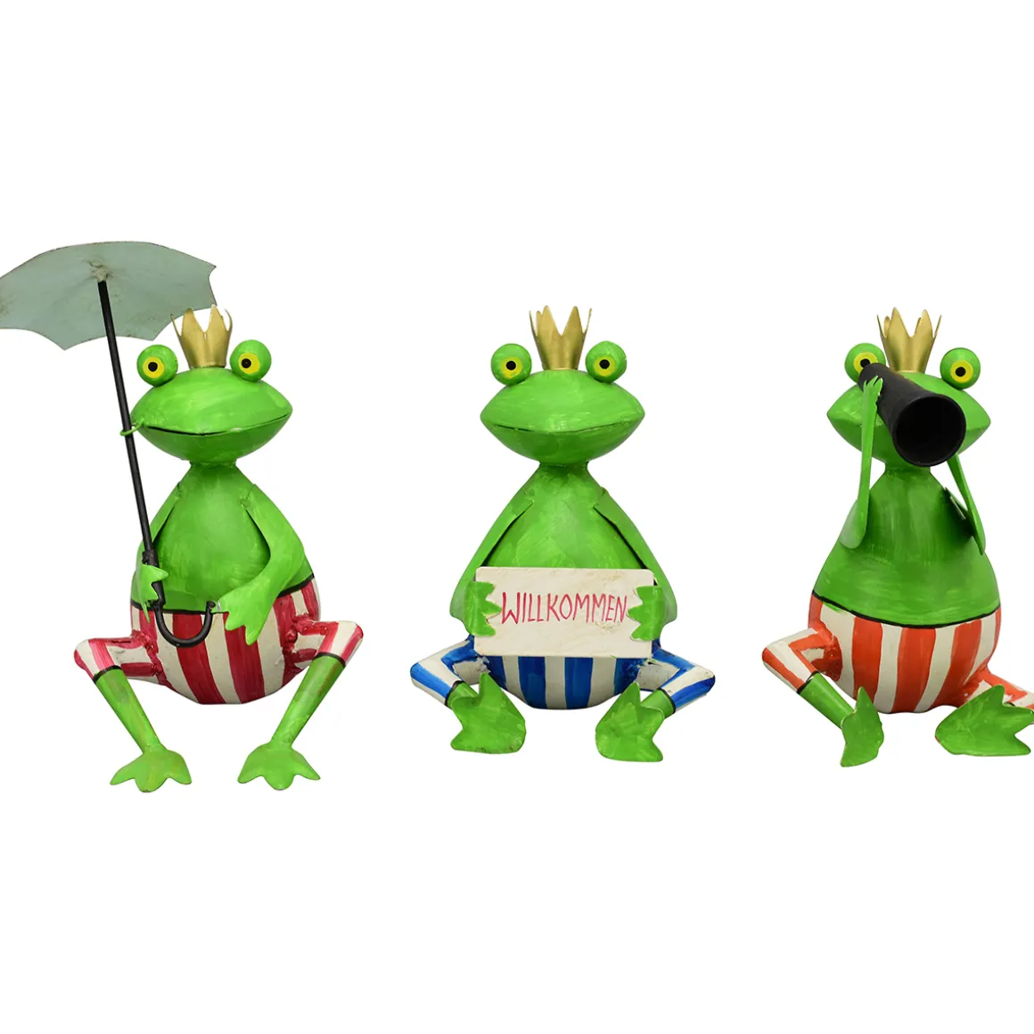 Produktinformationen „Deko Frosch Schwimmer mit Fernglas, Metallfrosch mit gestreifter Badehose, 22x28cm“