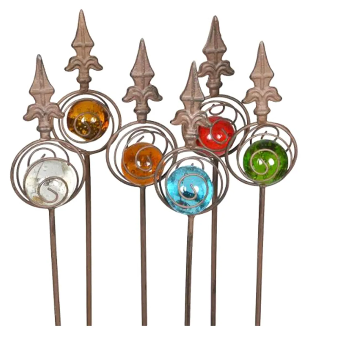 Deko Gartenstecker, Stab mit Glaskugel, grün oder klar, 118cm, Eisen