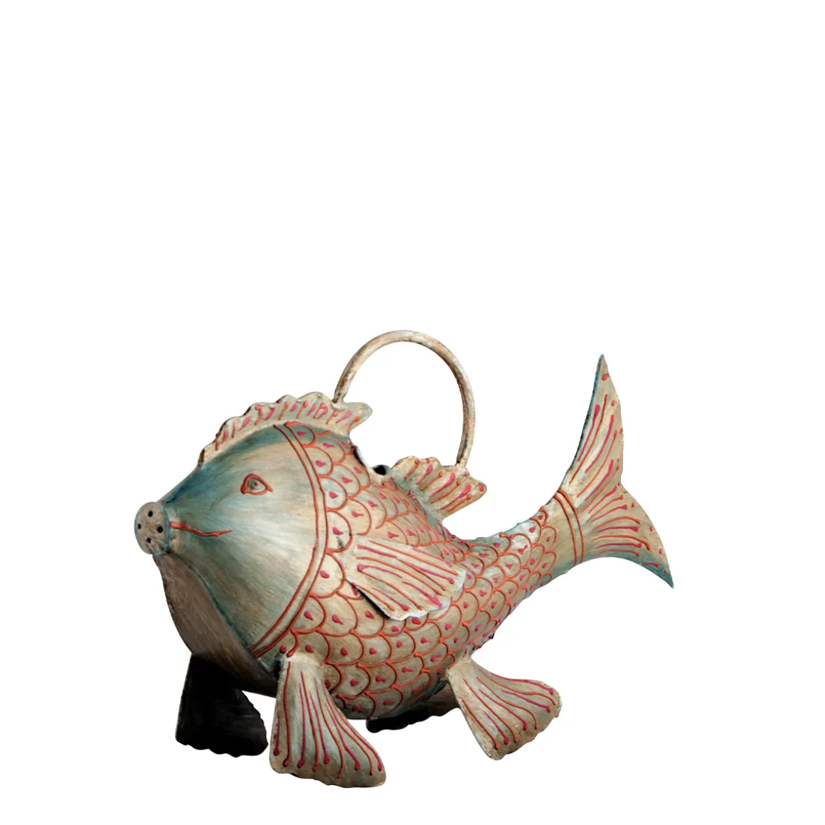 Deko Gießkanne Fisch, Metallfisch mit goldbraun-rot, 28cm