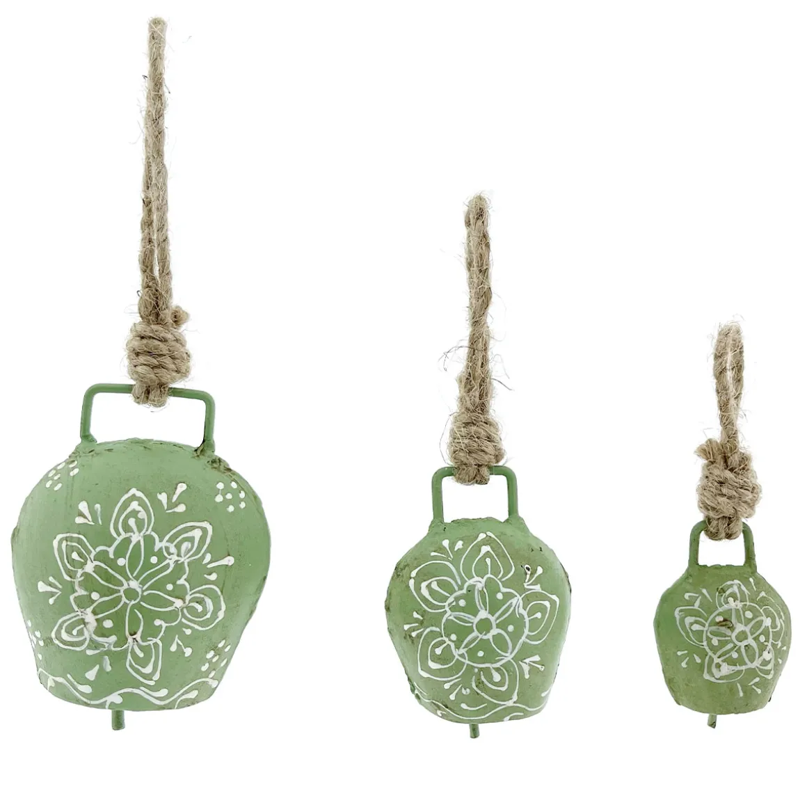 Produktinformationen „Deko Glocke grün mit Klang, Kuhglocke mit Blumenmuster grün-weiß, 5cm“