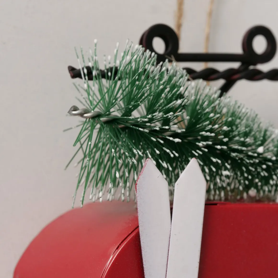 Produktinformationen „Deko Gondel Galero rot mit Tannenbaum und weißen Ski, Seilbahn, Skigondel aus Metall, Boltze Home Collections“