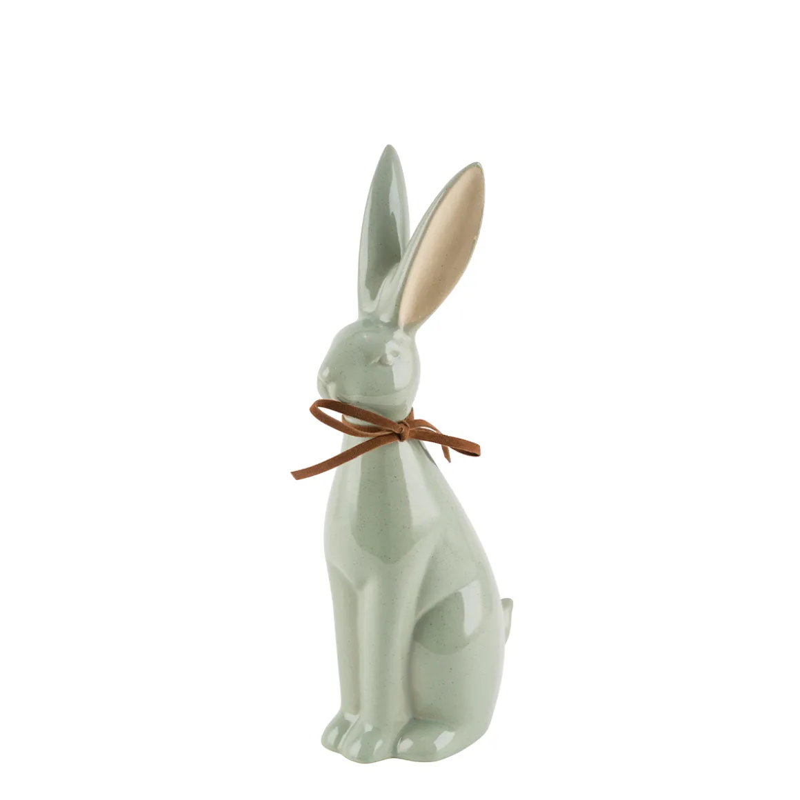 Produktinformationen „Deko Hase mit Schleife, schlanker Keramik Osterhase, glänzend salbei, 22cm“