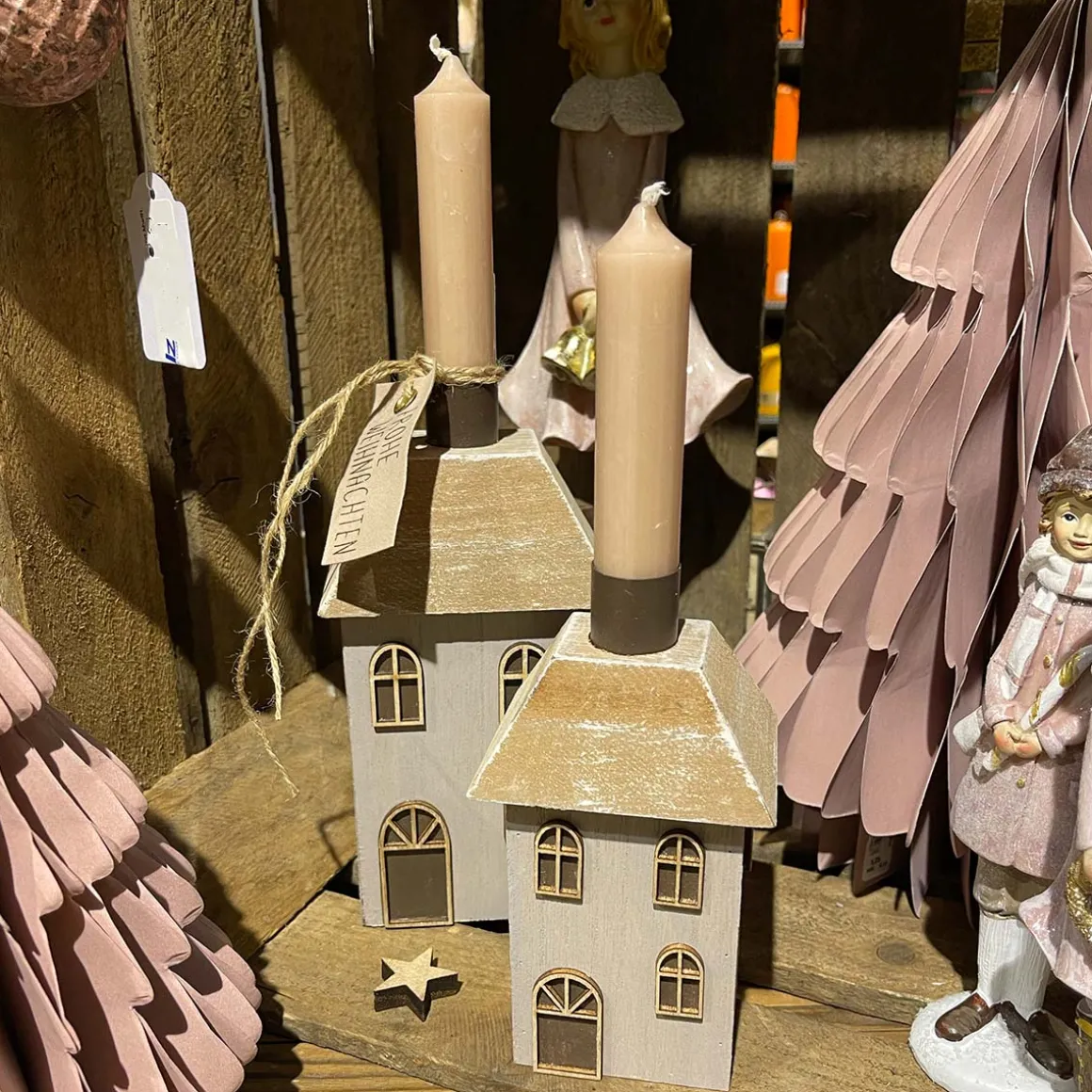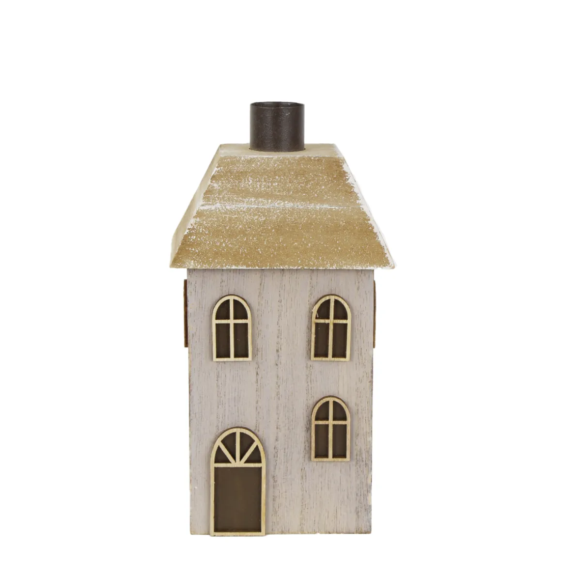 Deko Haus, Weihnachtshaus, Holzhaus mit Kamin, grau-natur, 9x7x19cm