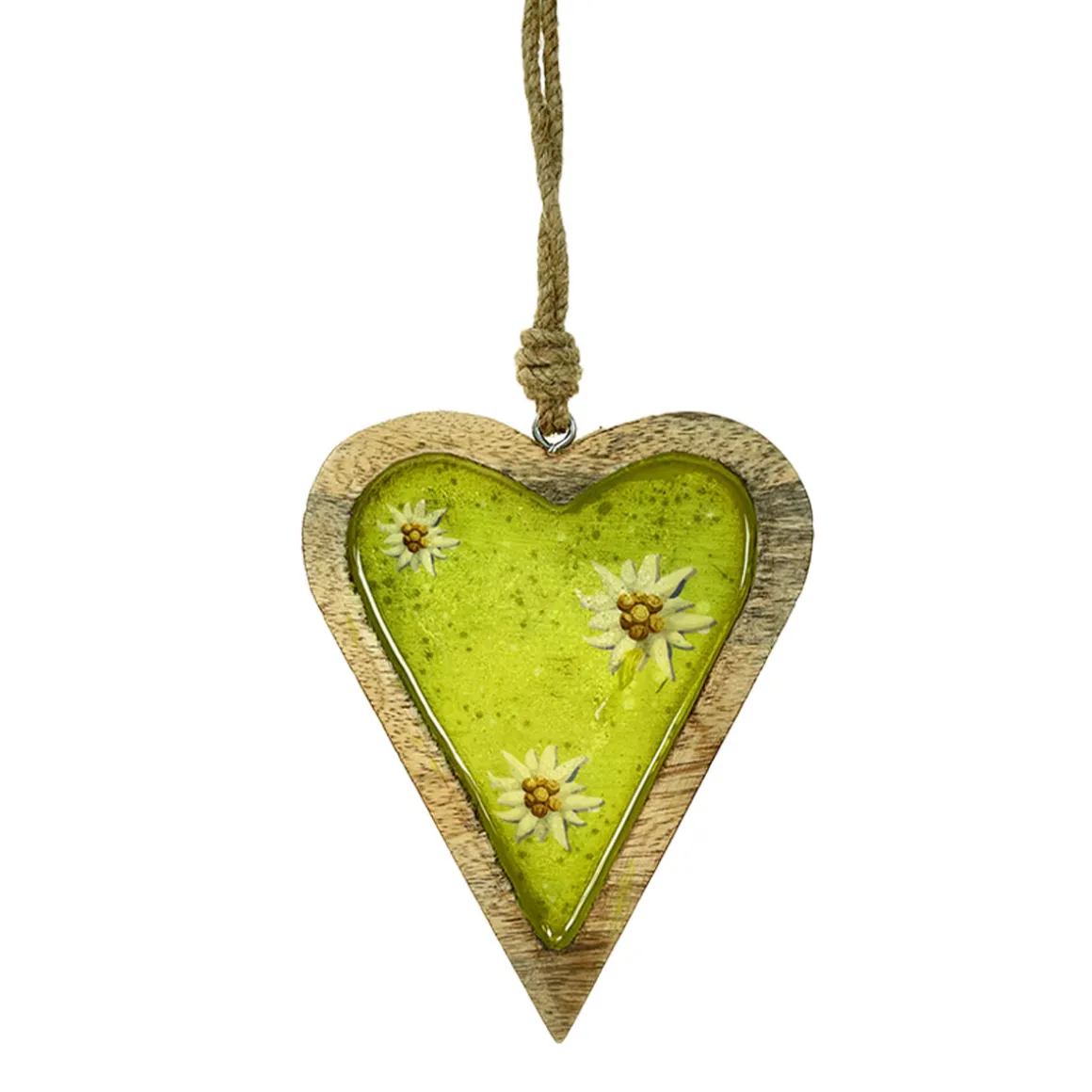Deko Herz Landhaus, Holzherz hellgrün mit Edelweiß, Emailleoptik, 11x14cm, Hänger