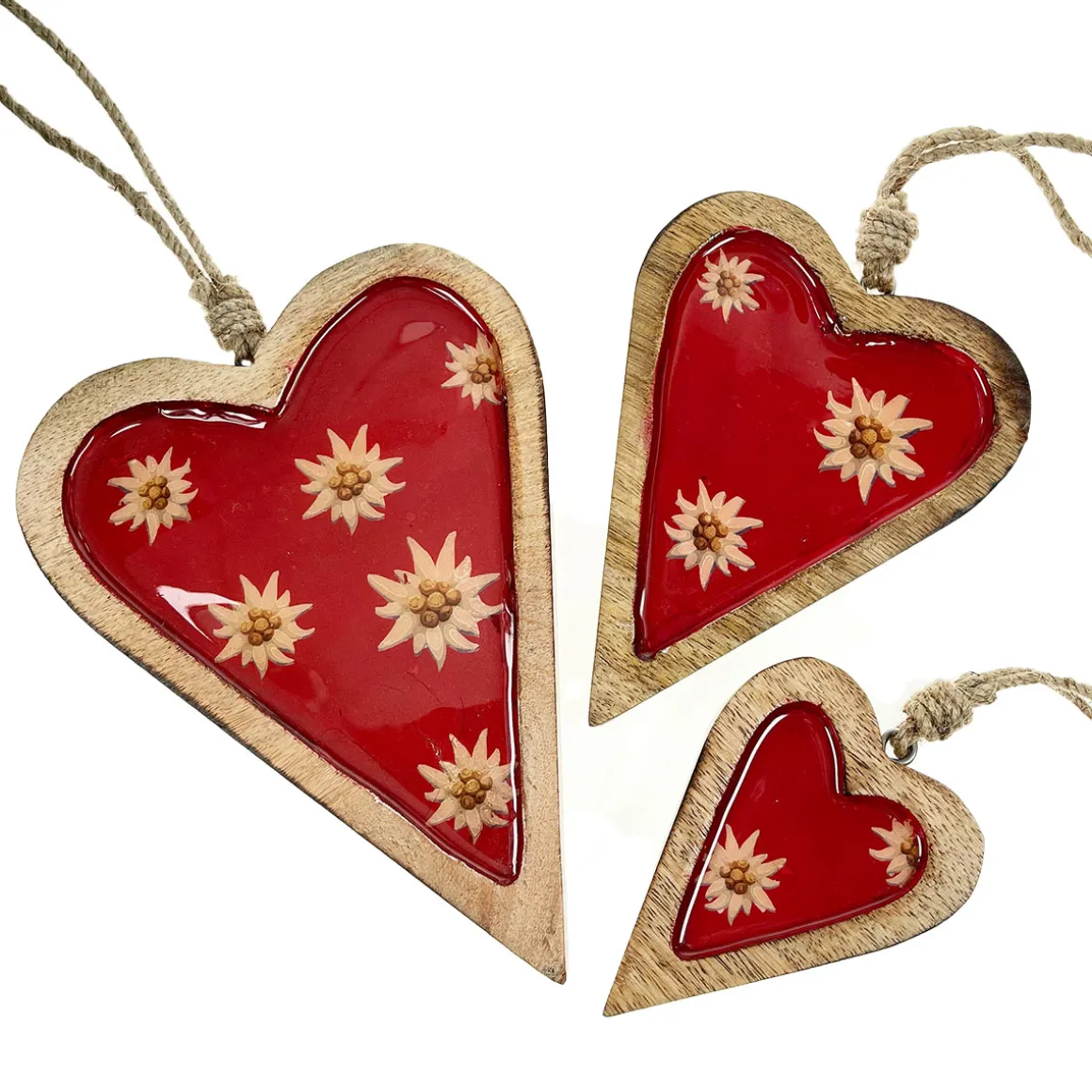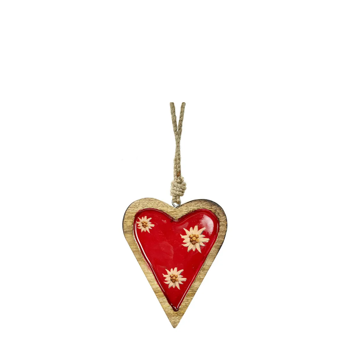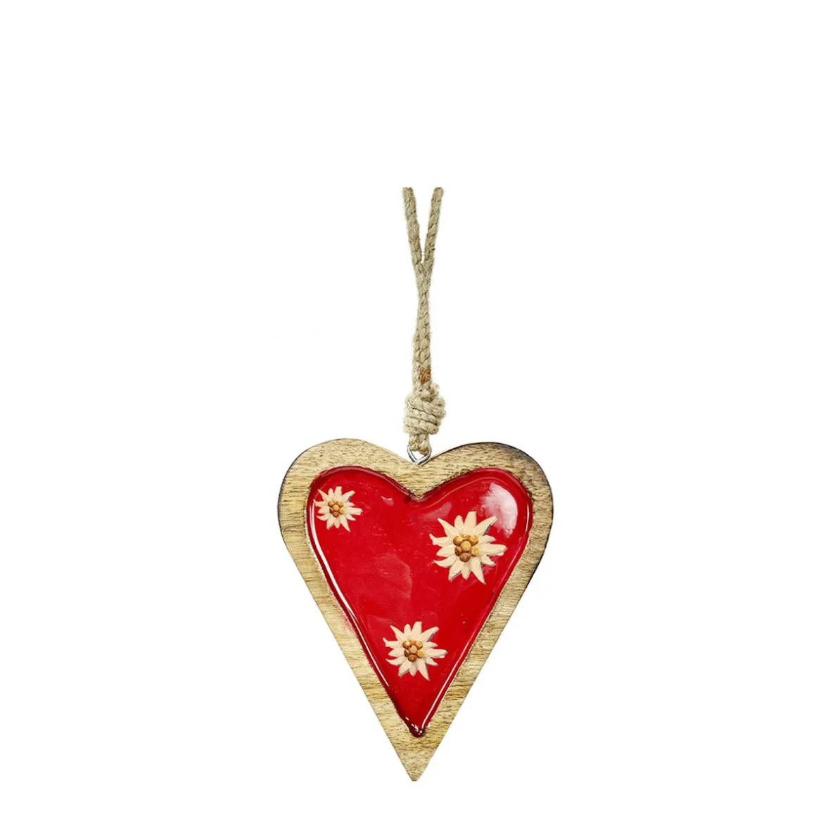 Deko Herz Landhaus, Holzherz rot mit Edelweiß, Emailleoptik, 7x10cm, Hänger