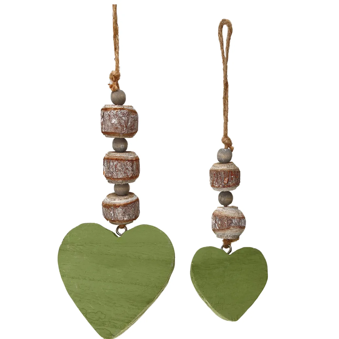 Deko Herz mit 3 Birkenholz Kugeln, Holzherz grün, 25cm, Hänger