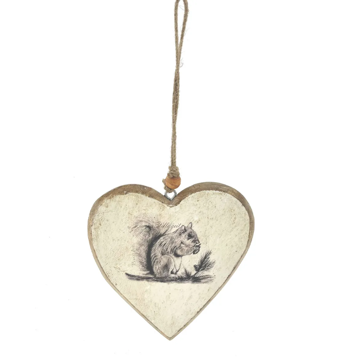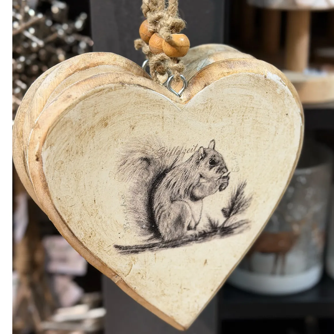 Produktinformationen „Deko Herz Nostalgielook, Holzherz mit Eichhörchen used look, 18x20cm, Hänger“
