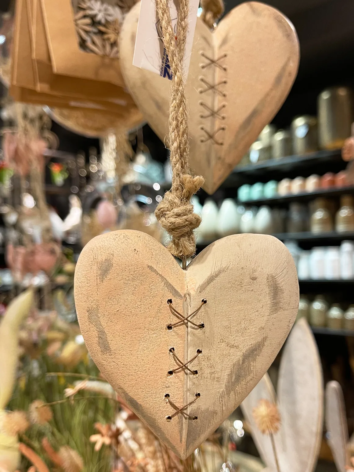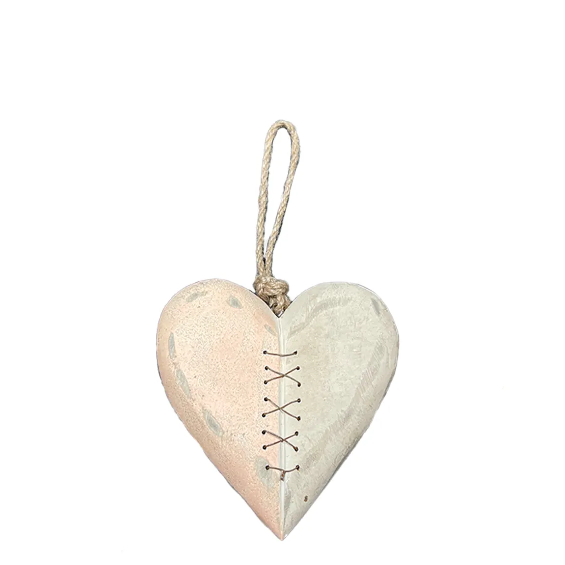 Produktinformationen „Deko Herz, rosa-weiß, used look, 9cm, Hänger“
