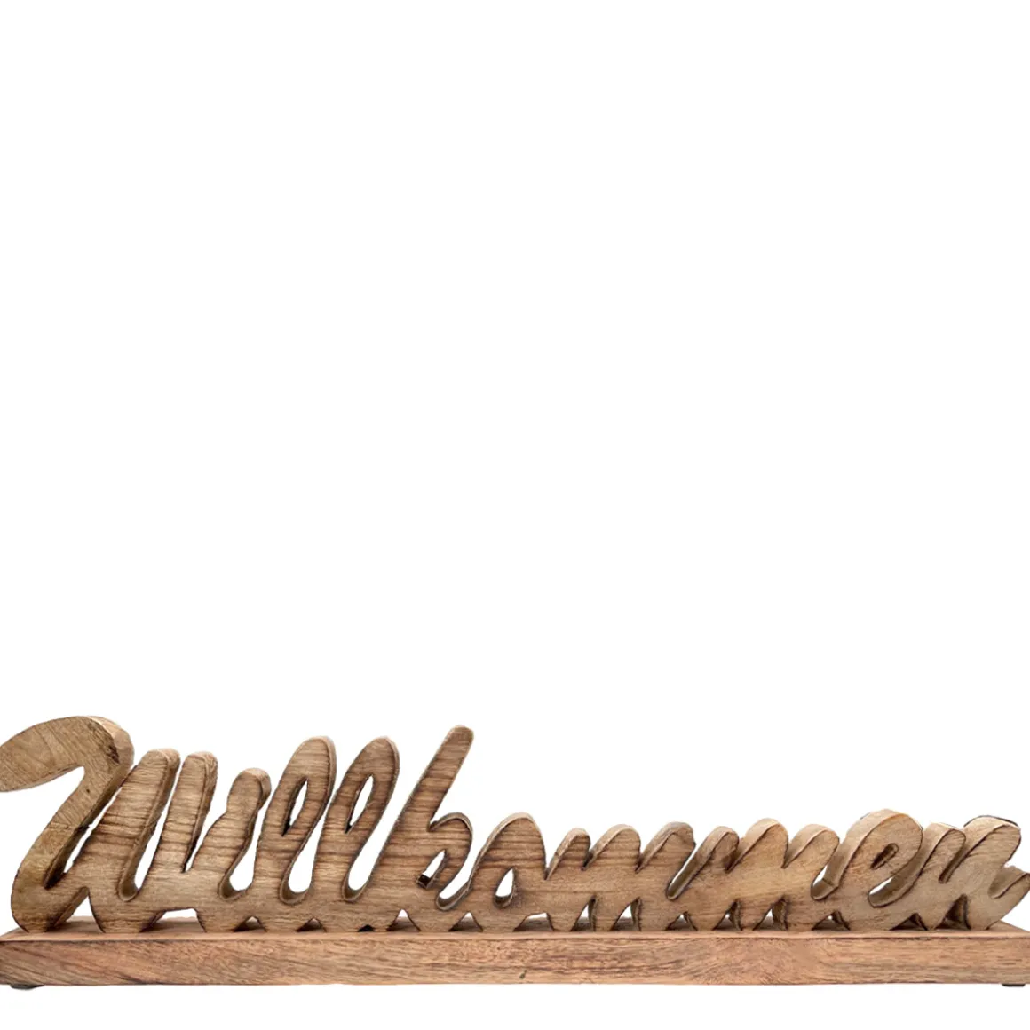 Deko Holzaufsteller Willkommen, Schriftzug Willkommen auf Holzsockel, 48x12cm