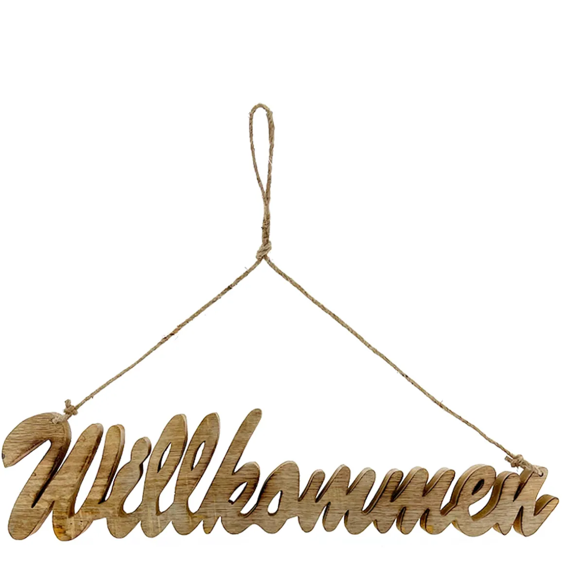 Deko Holzhänger mit Schriftzug Willkommen, 52x12cm, Mangoholz