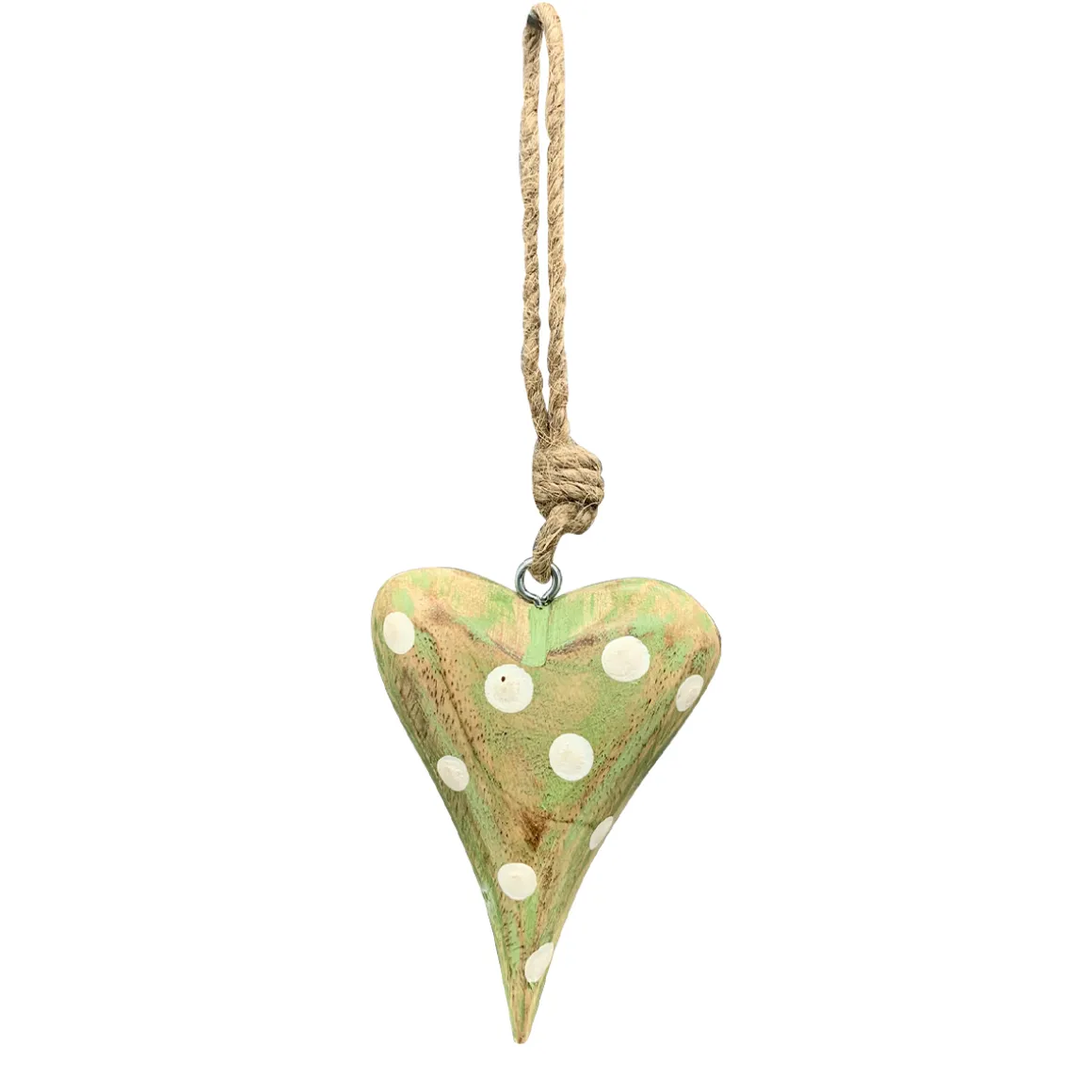 Deko Holzherz grün used look, Herz gepunktet, hellgrün-weiß, 7x9cm, Holzhänger