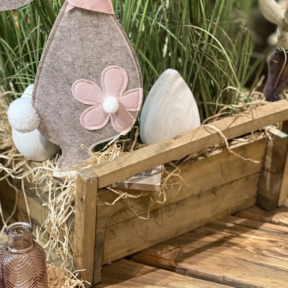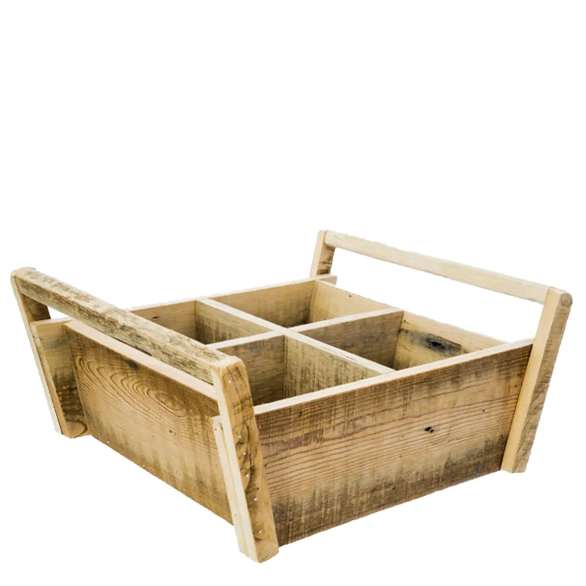 Deko Holzkiste Naturholz, Pflanzkorb mit 4 Unterteilungen und Griffe, 35x34cm