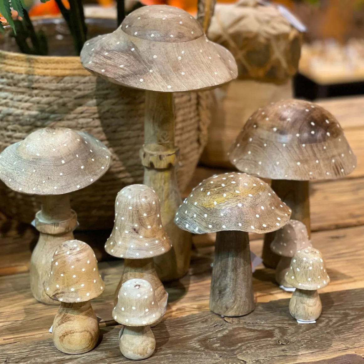 Deko Holzpilz, Fliegenpilz natur, breite Kappe, 15x13cm
