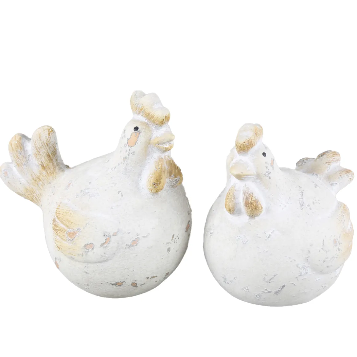 Deko Huhn, Keramikhuhn, Henne cremeweiß used look, 13cm