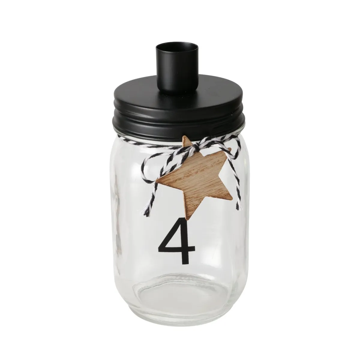 Deko Kerzengläser Advent, Kerzenhalter mit Zahlen 1-4 und Holzstern, Boltze Home Collections