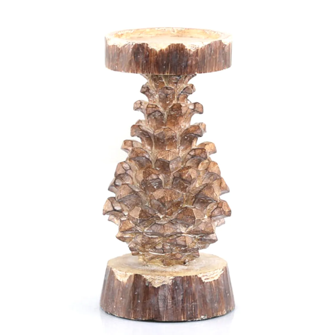 Deko Kerzenhalter Kiefernzapfen, Kerzenständer in Zapfenform, braun-grau used look, 22cm