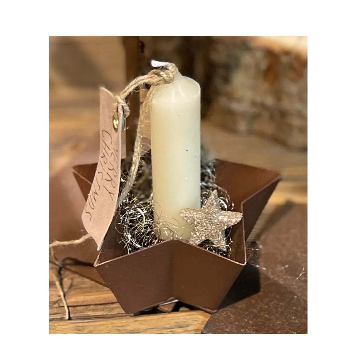 Produktinformationen „Deko Kerzenhalter Stern, Kerzenhalterschale für Stabkezen, dunkelbraun, 11x5cm, Metall“