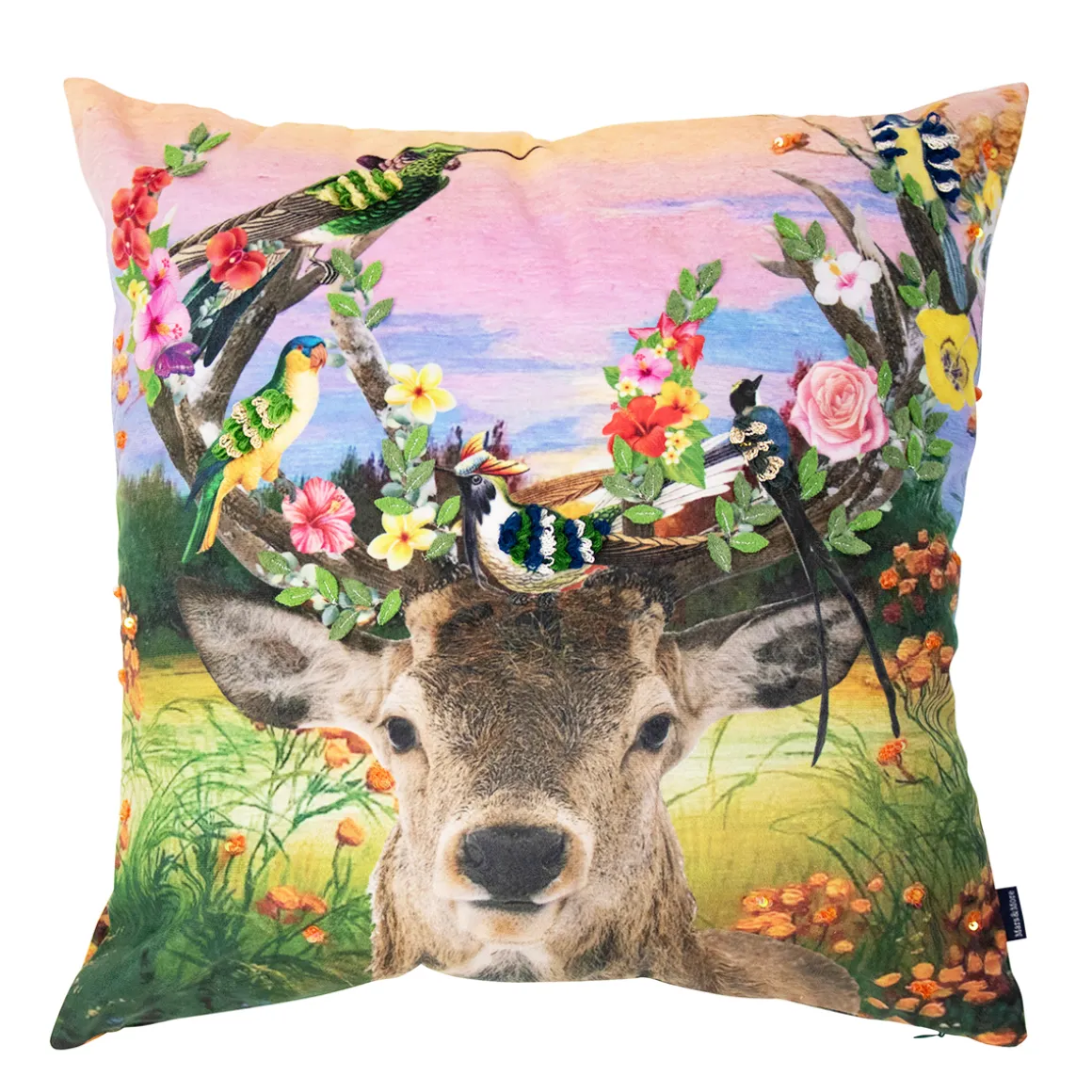 Produktinformationen „Deko Kissen Hirsch Fleury, Hirsch mit Blumengeweih und Vögel, 45x45cm, Mars & More“