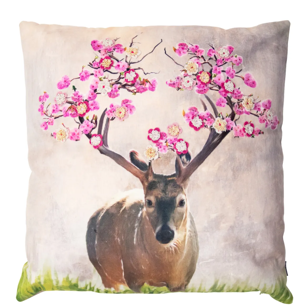 Deko Kissen Hirsch Fleury, Hirsch mit Kirschblüten, 45x45cm, Mars & More