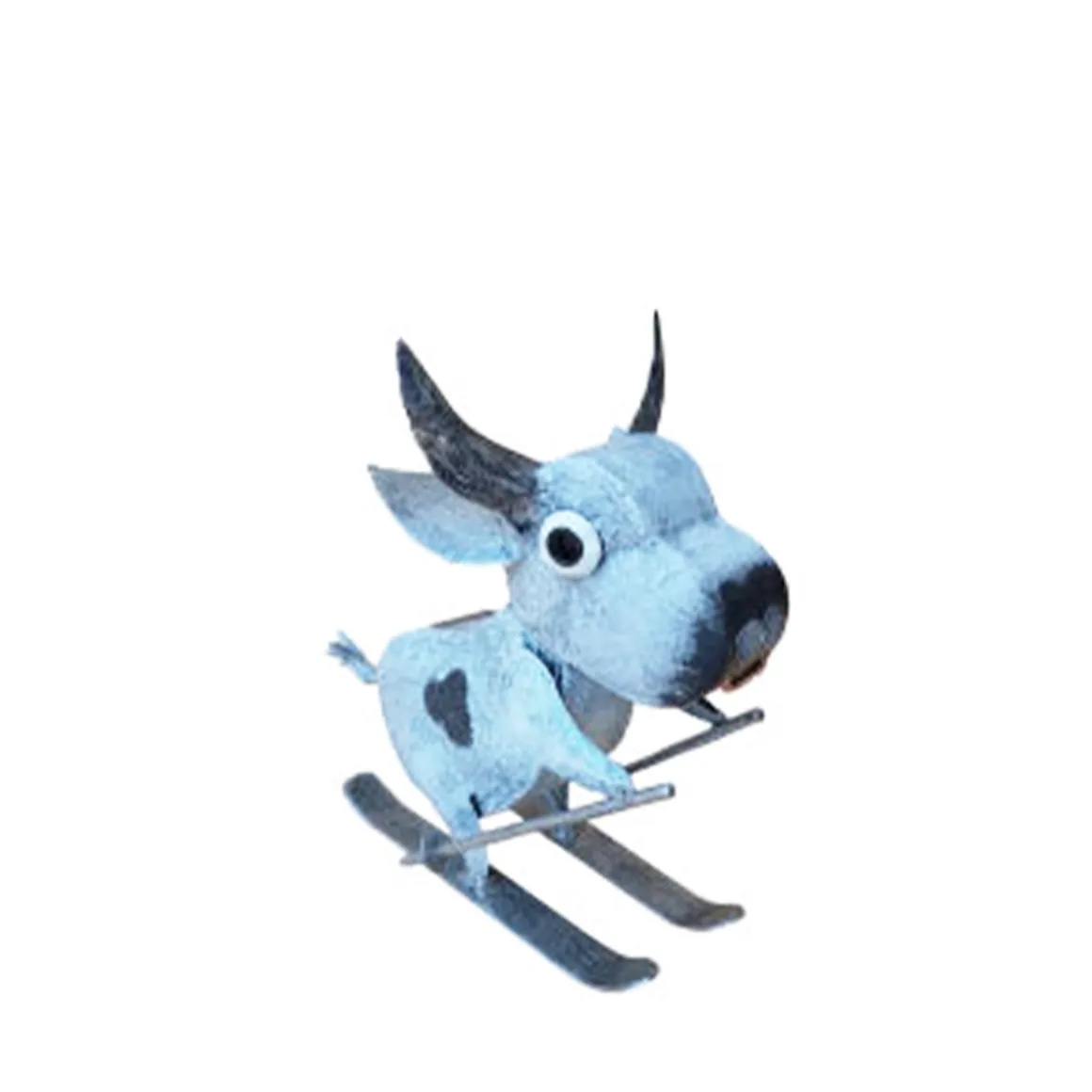 Deko Kuh, Metallkuh auf Ski, schwarz-weiß, 18x20cm, Medusa