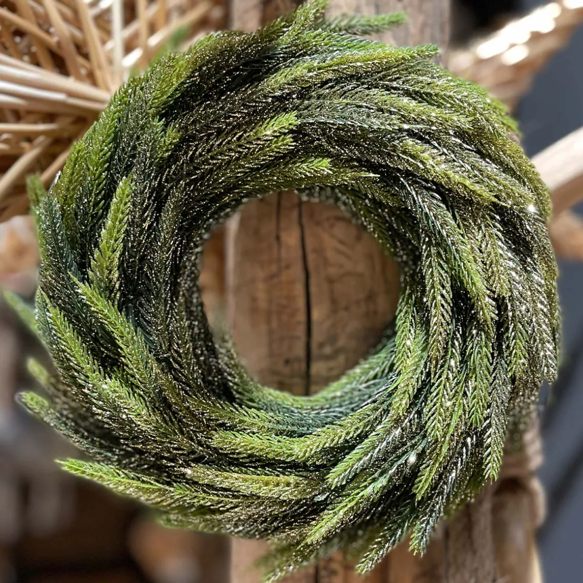 Deko Kunstkranz Kiefer mit Glimmer, Türkranz grün, Ø22cm