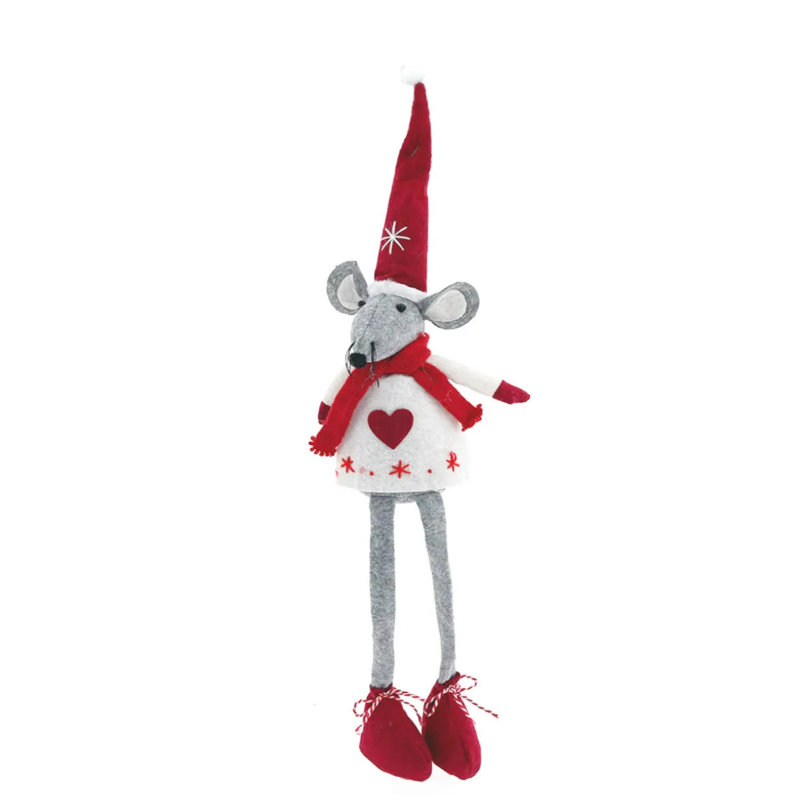 Deko Maus, Weihnachtsmaus Anna mit Herz und langen Bammelbeinen, rot/weiß, 43cm, Kantenhocker