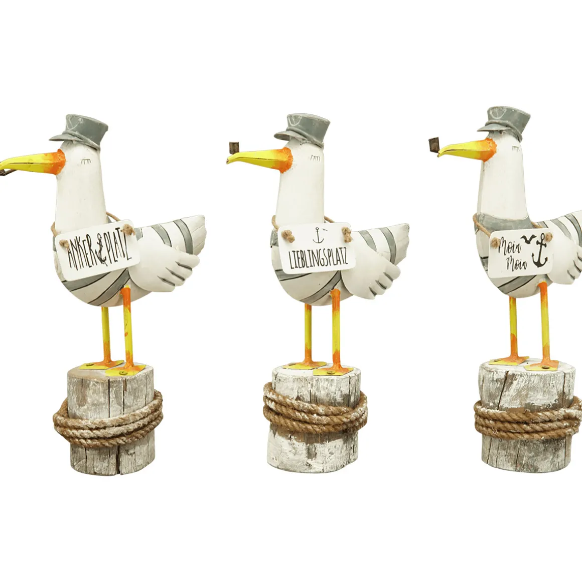Produktinformationen „Deko Möwe mit Schild Ankerplatz, Metallmöwe mit Pfeife und Matrosenkappe, 36cm“