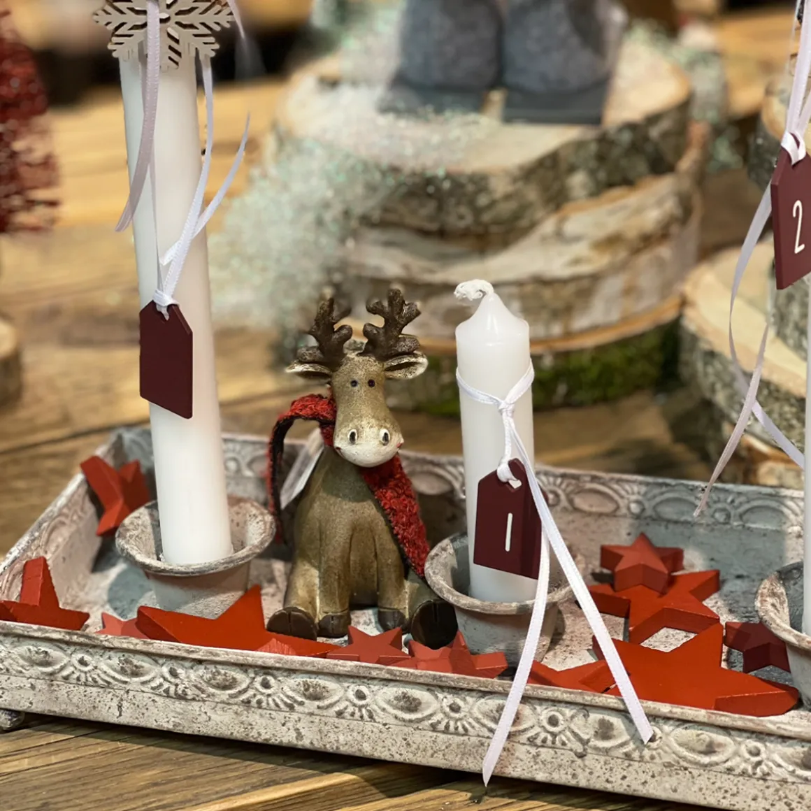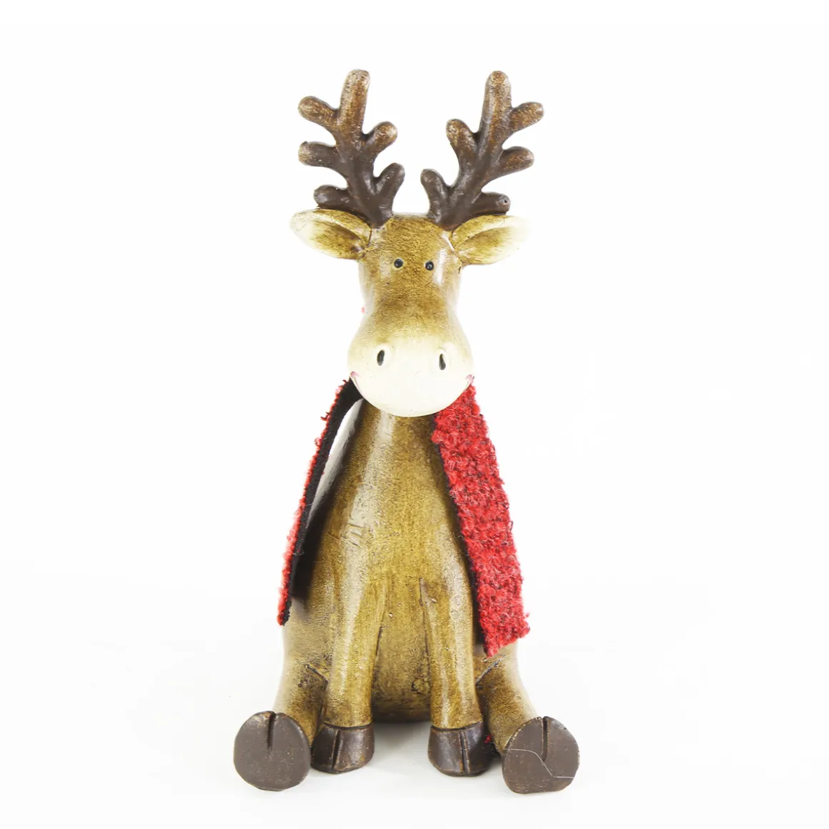 Deko Rentier Winter, Elch mit Schal, 12x20cm, Keramik