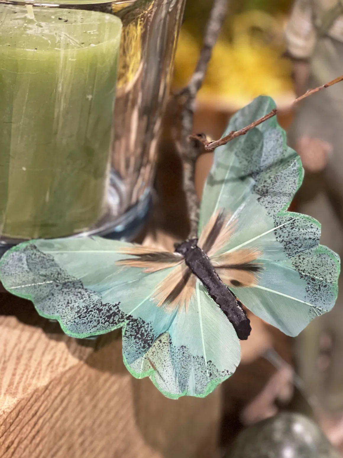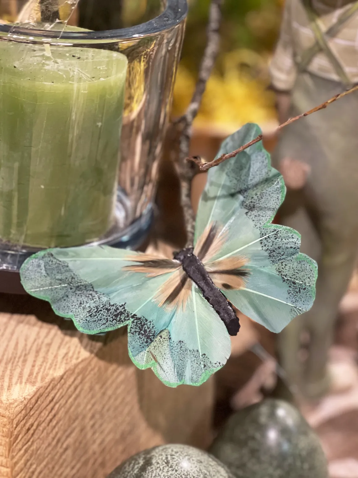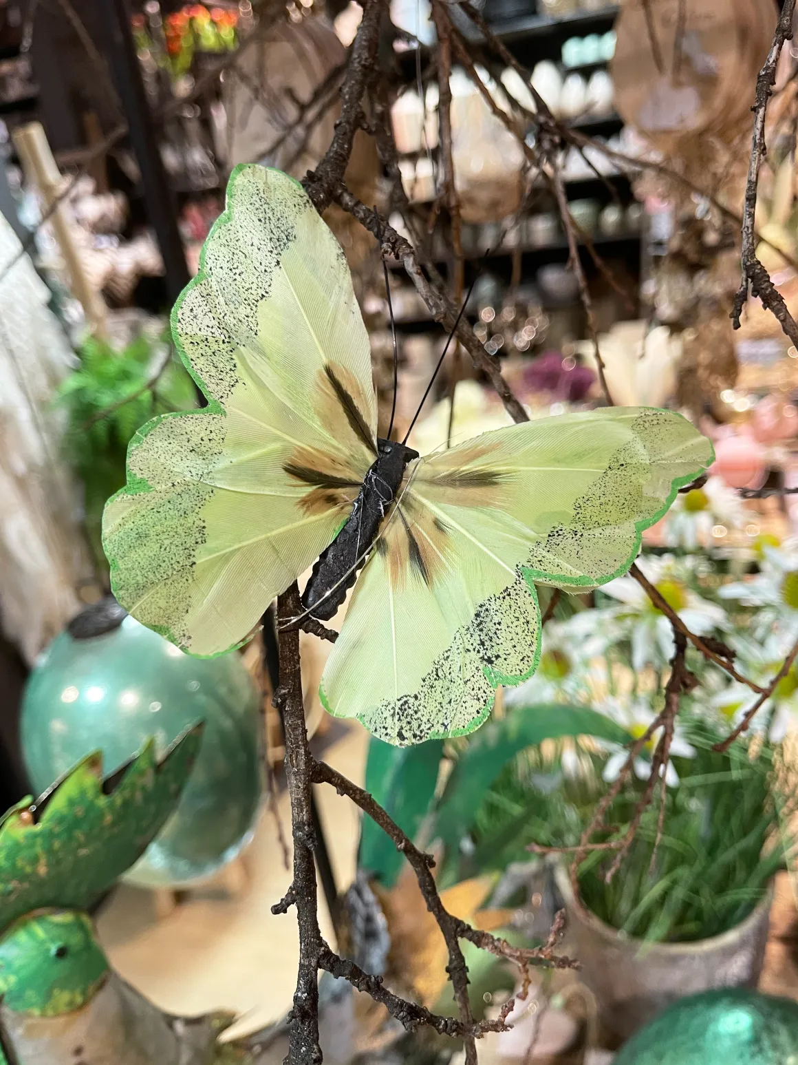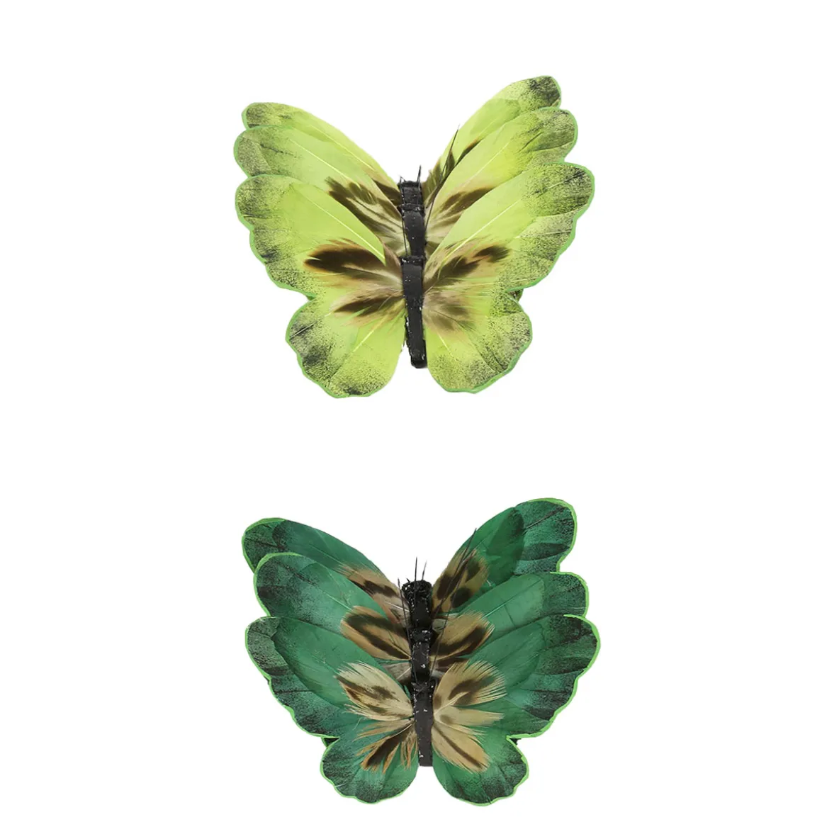 Deko Schmetterlinge mit Draht, hellgrün+dunkelgrün, Set/6
