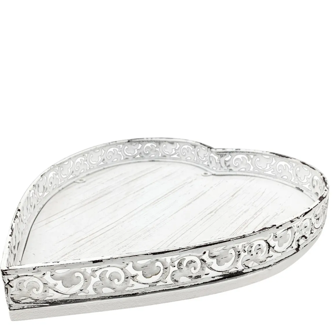 Deko Tablett Herz weiß, Metallschale mit Muster – used look, 22x23x4cm