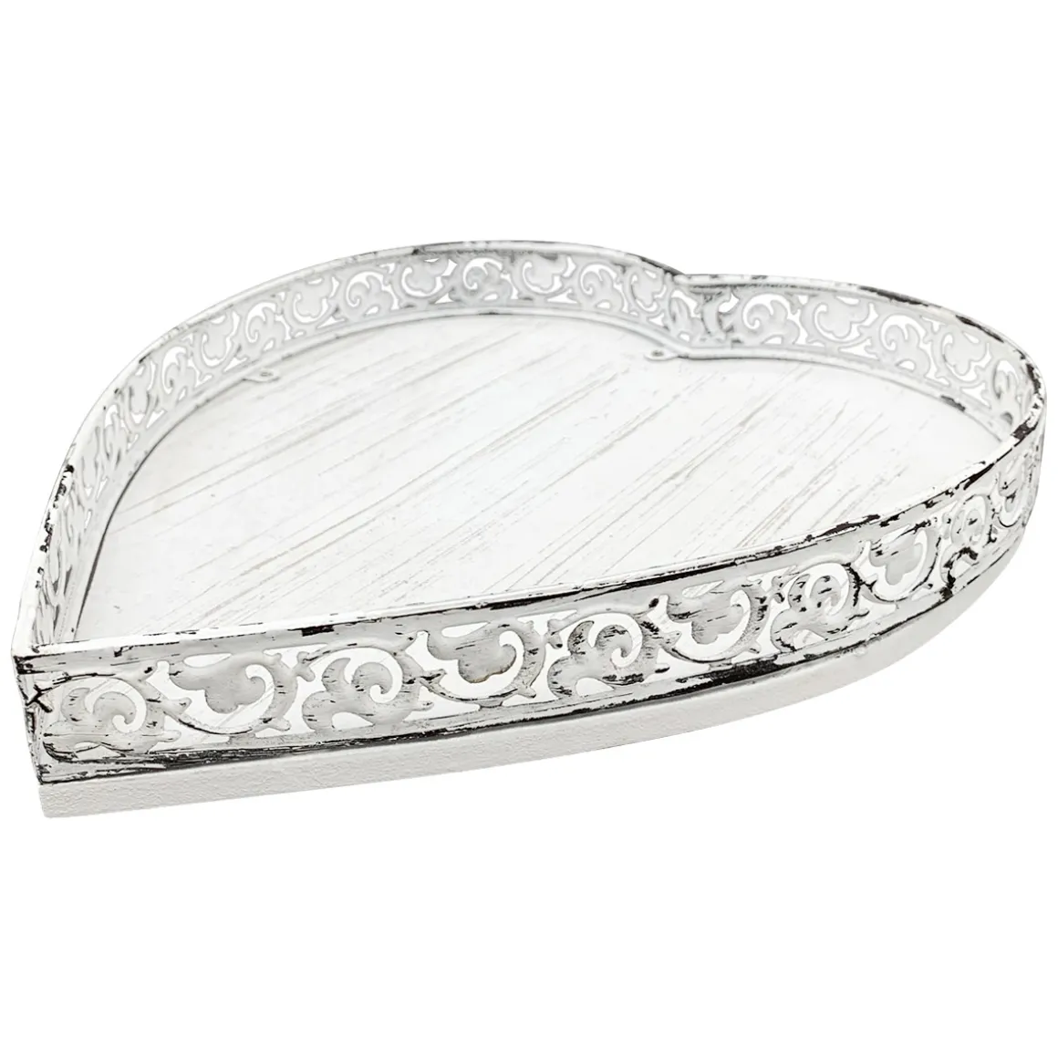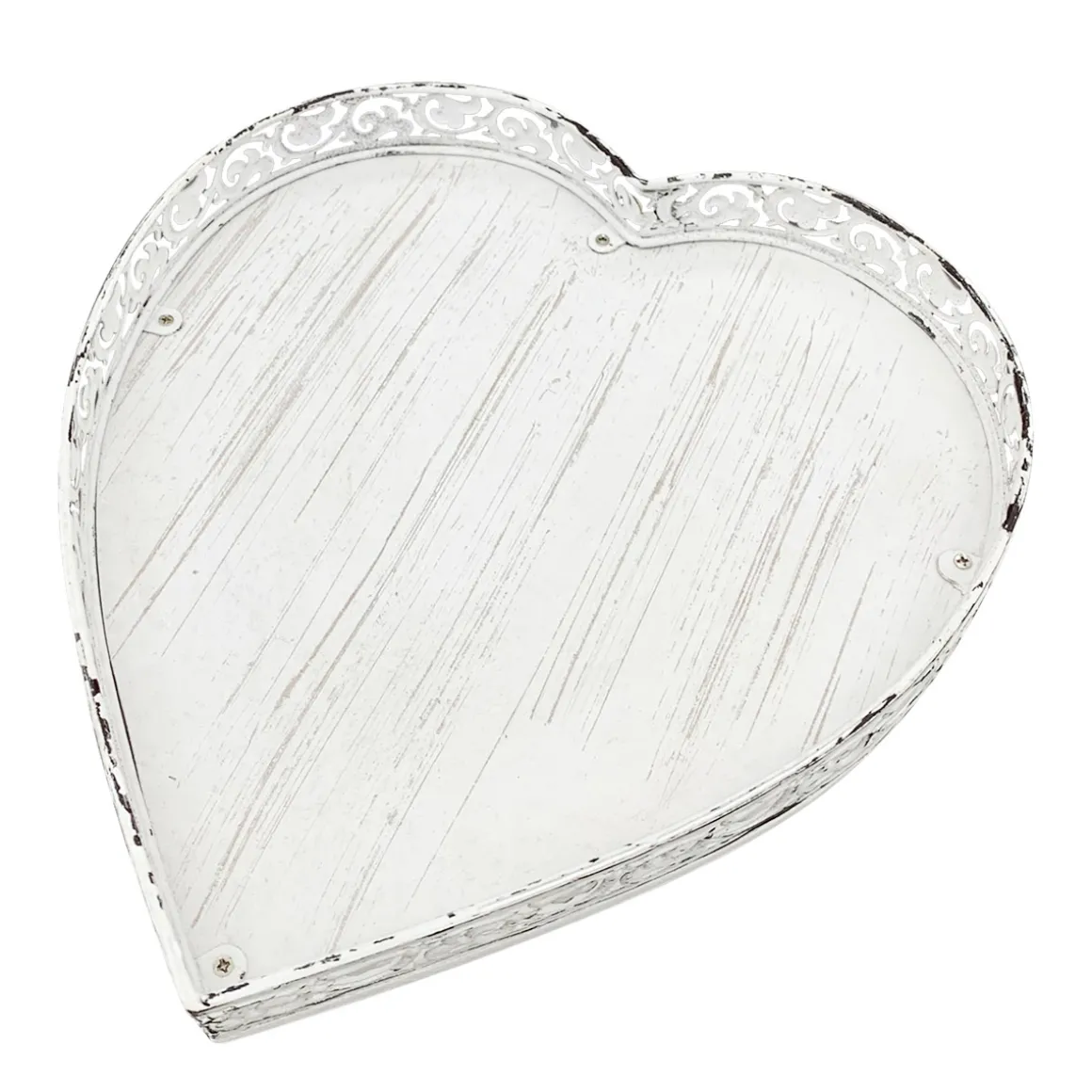 Deko Tablett Herz weiß, Metallschale mit Muster – used look, 25x28x4cm