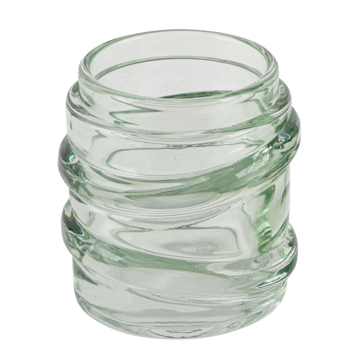 Deko Teelichtglas Wellenform, Windlicht aus Glas hellgrün, 9x9cm