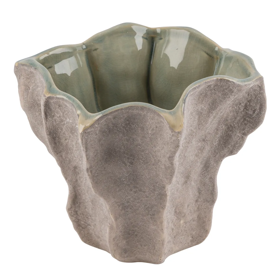 Deko Vase Steingut, Blumenvase grau-grün mit Lacküberzug, 22x18cm