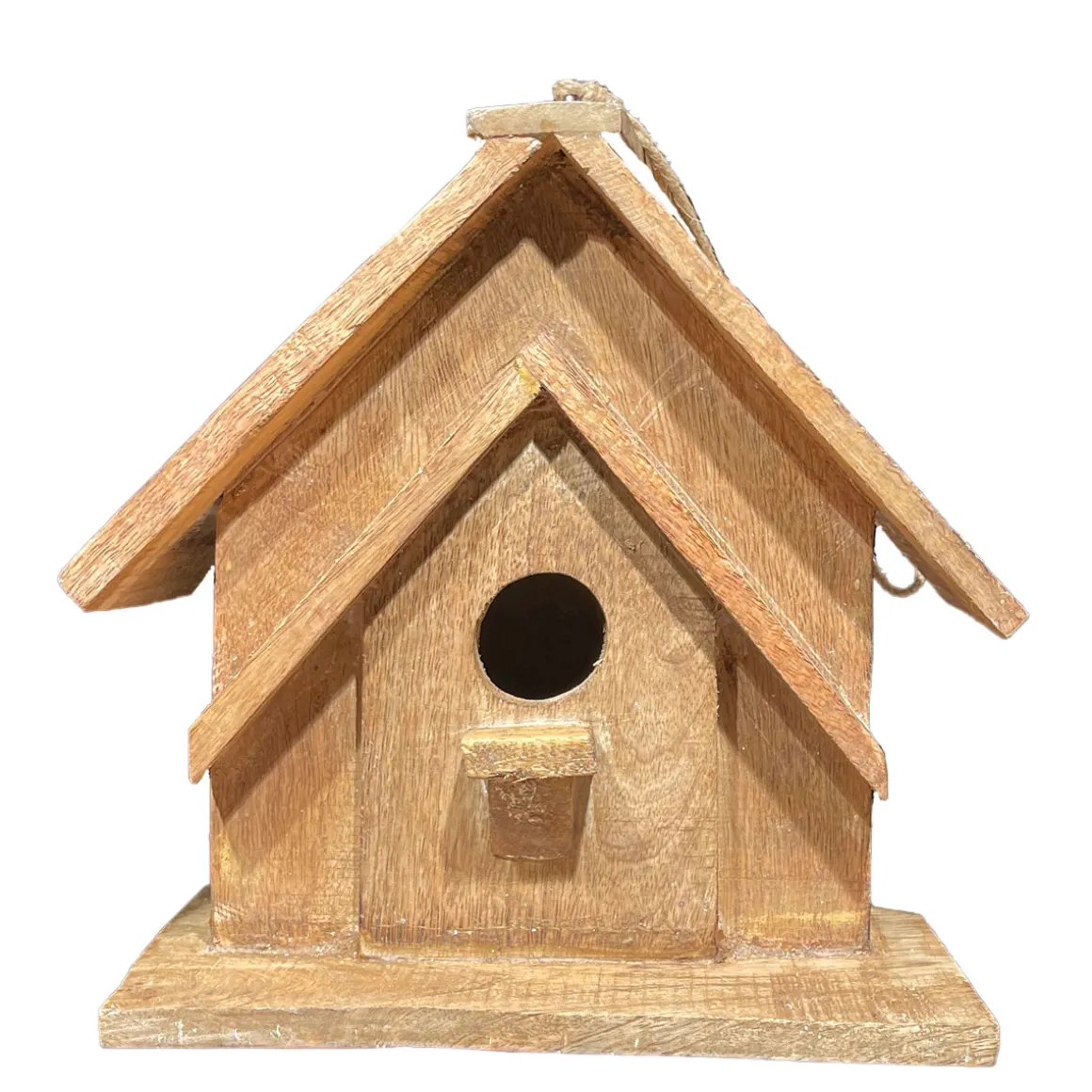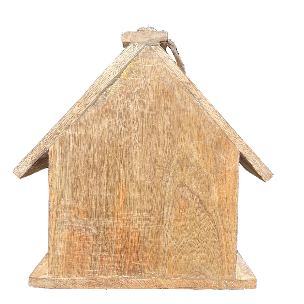 Deko Vogelhaus Natur, Holzhaus aus massivem Mangoholz, zum Hängen oder Stellen, 29cm