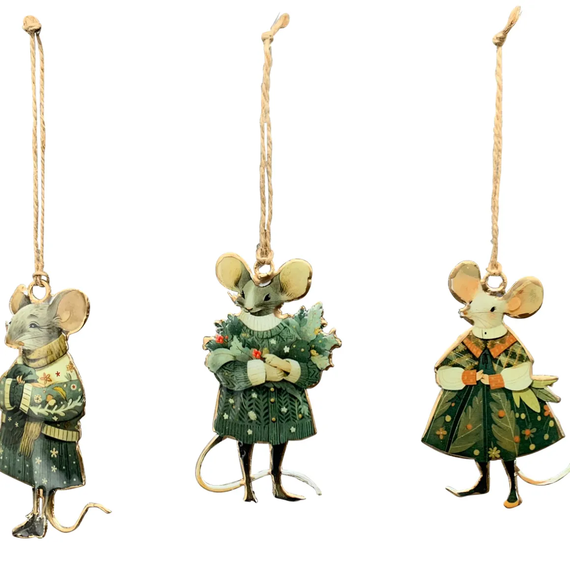 Deko Weihnachtshänger Maus im Kleid, Nostalgie-Metallmaus used look, 15cm