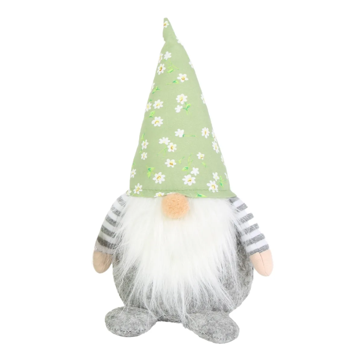 Deko Wichtel, Gartenwichtel mit Blumenhut grün und Ringelshirt, 24cm