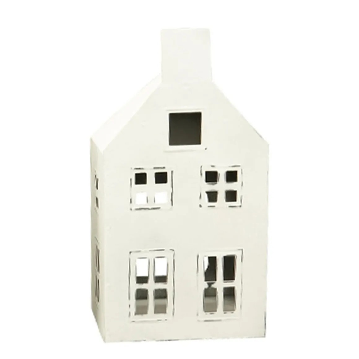 Deko Windlicht, Haus Claire Blanc, Quadratdach, weiß unfinish, 25cm, Metall