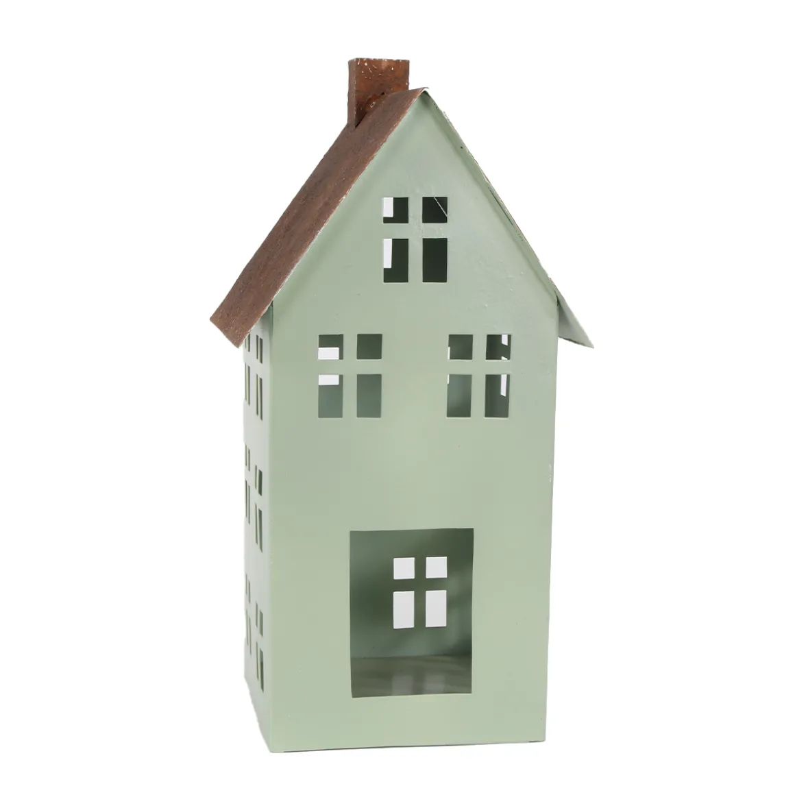 Deko Windlicht Haus, Metallhaus rost-grün, 31cm, Metall