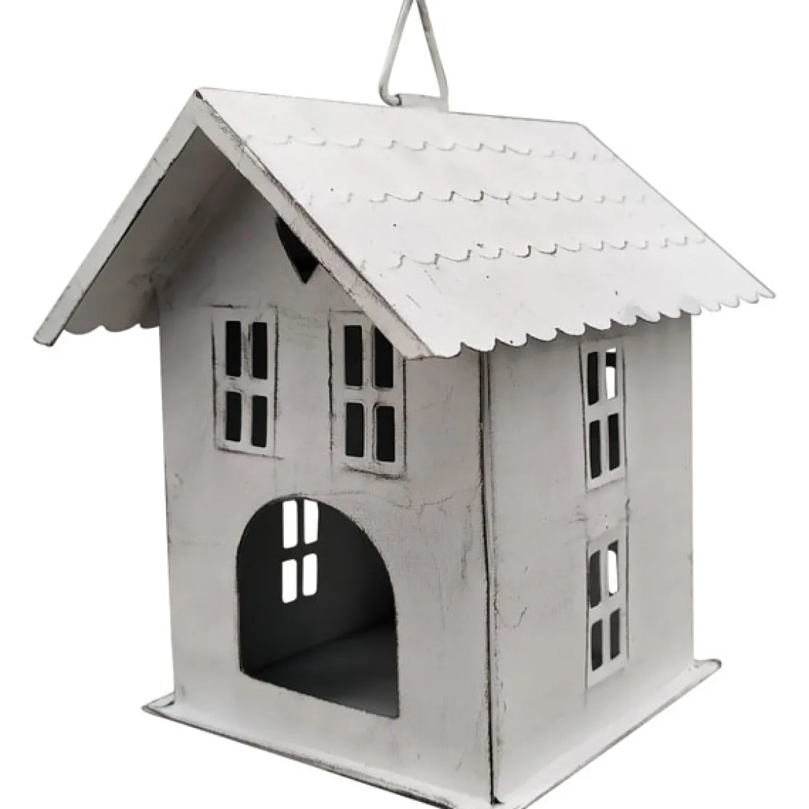 Produktinformationen „Deko Windlicht, Haus mit Herz, antikweiß, used look, 14x14cm, Metall“