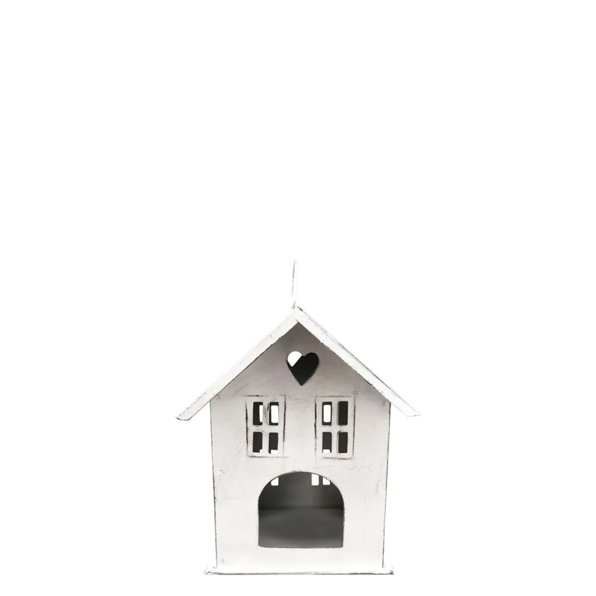 Deko Windlicht, Haus mit Herz, antikweiß, used look, 14x14cm, Metall