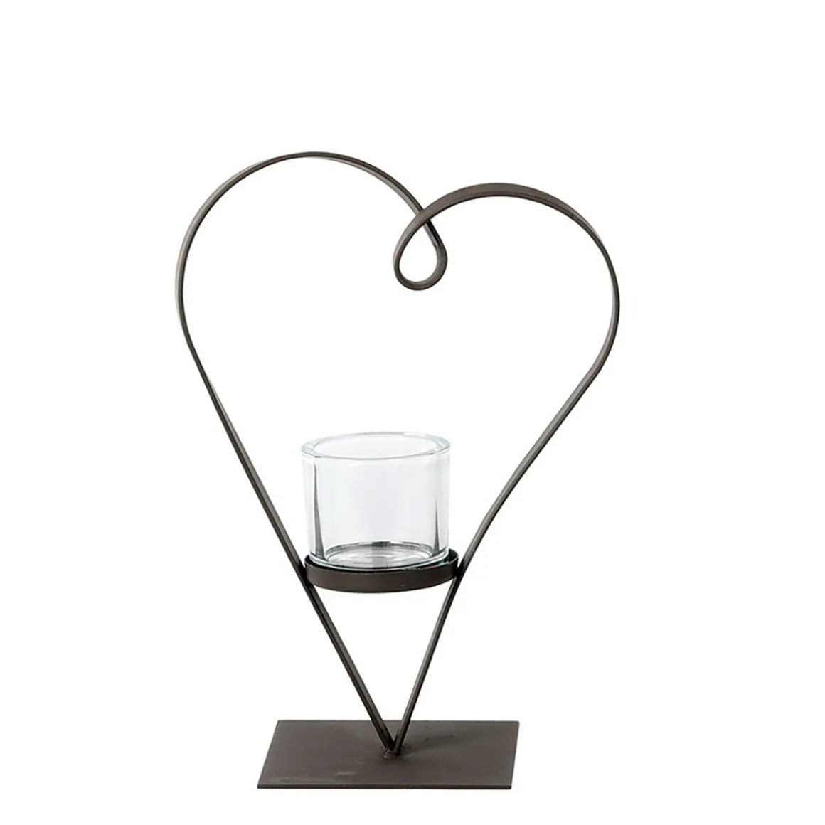 Deko Windlicht Herz Diana, geschwungenes Metallherz auf Fuß, 25cm, WMG Grünberger