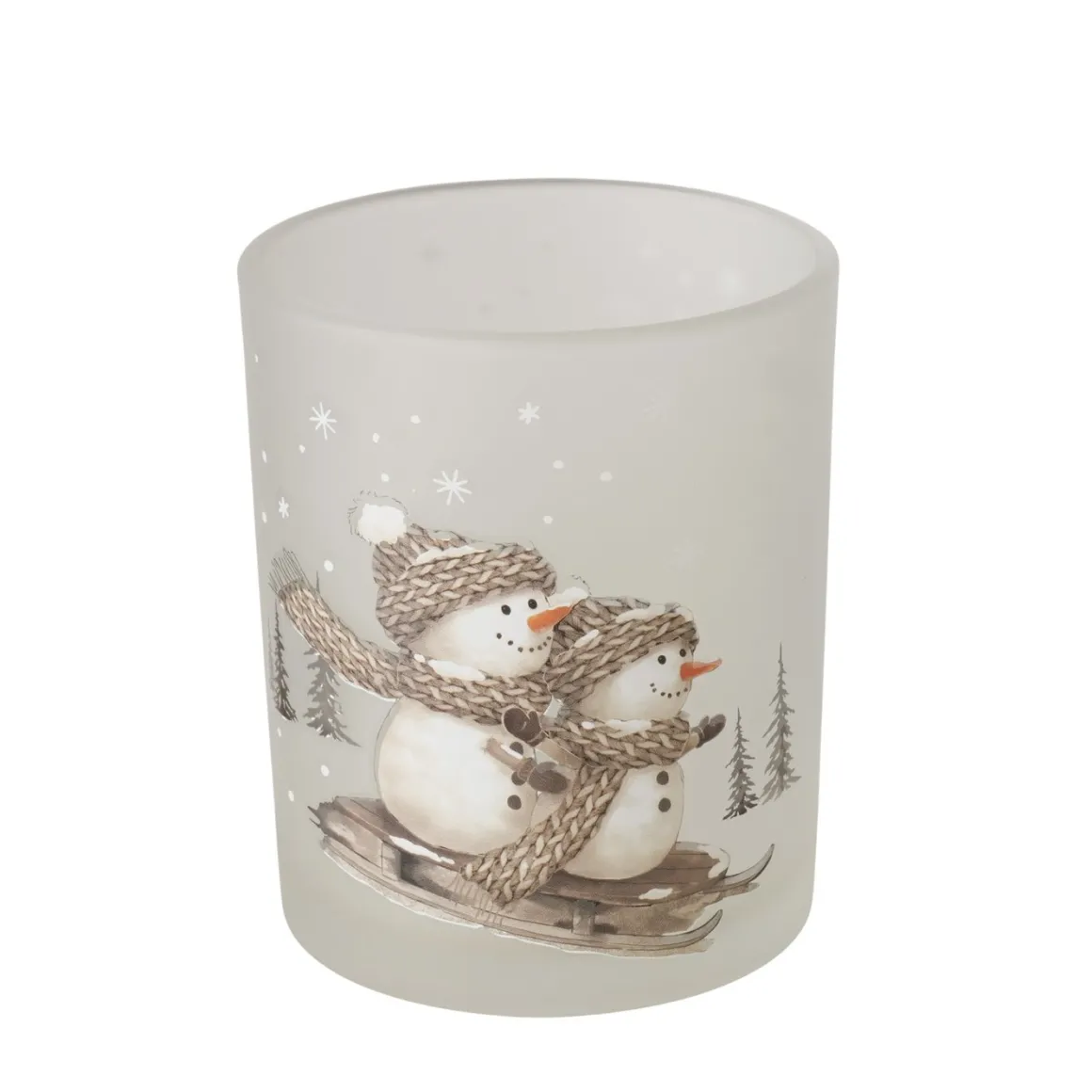 Deko Windlicht Schneemann Frosty, Kerzenglas matt, 8cm, Boltze Home Collection