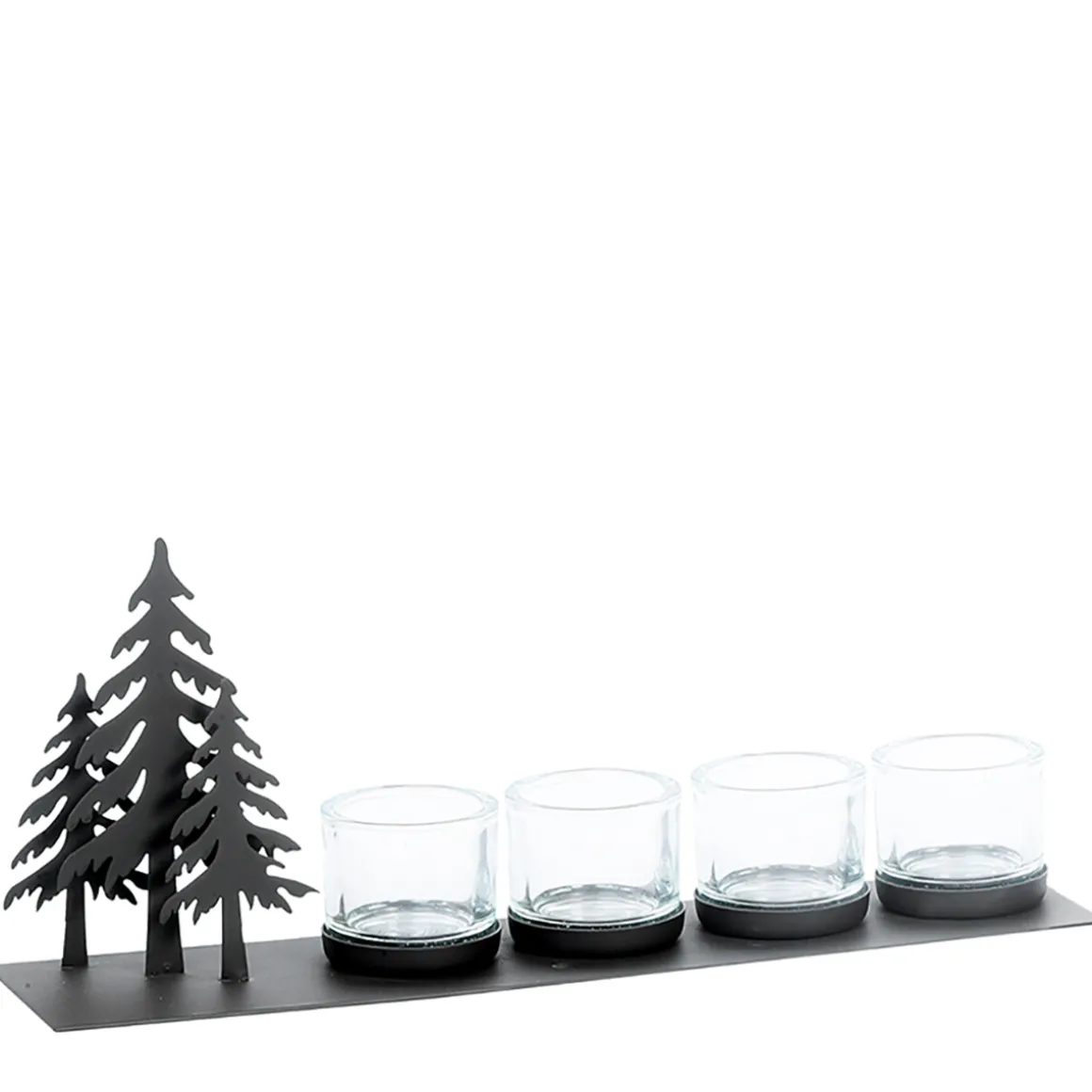 Eisen Windlicht Tanne, Eisentannen mit 4 Teelichtgläser, 20x40cm, WMG Grünberger