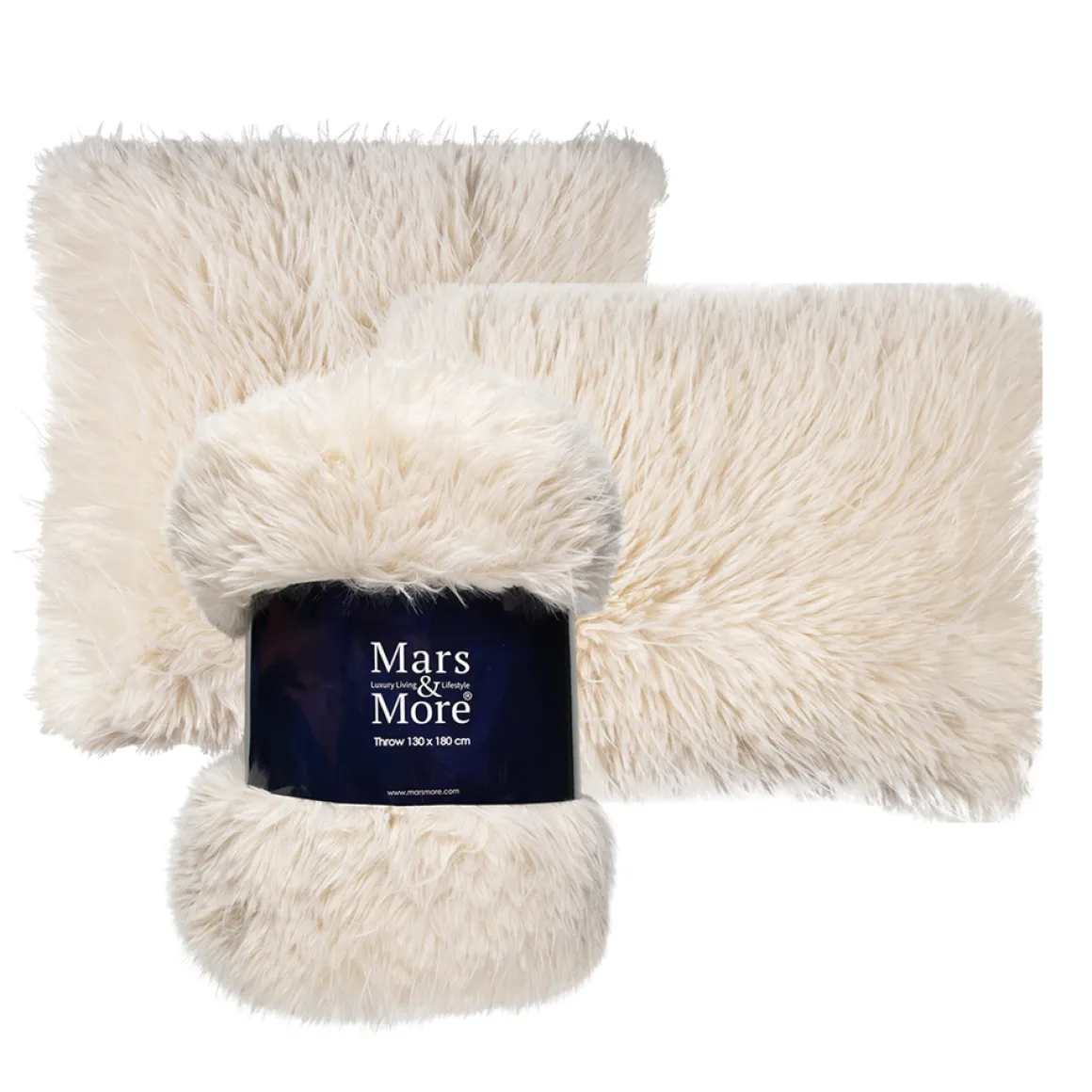Fake Fellkissen Teddy, Teddy Langhaar, cremeweiß, 35x45cm, Mars & More