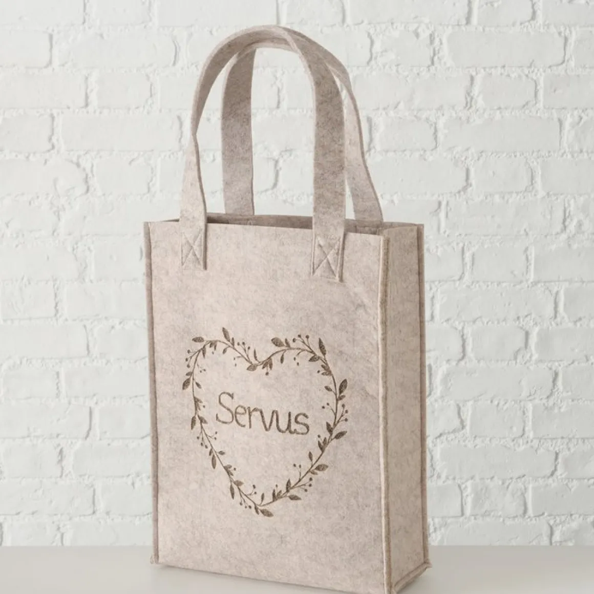 Filz Tasche Garni beige, Filztasche mit Herz und Spruch: Servus, 28x40cm, Boltze Home Collections