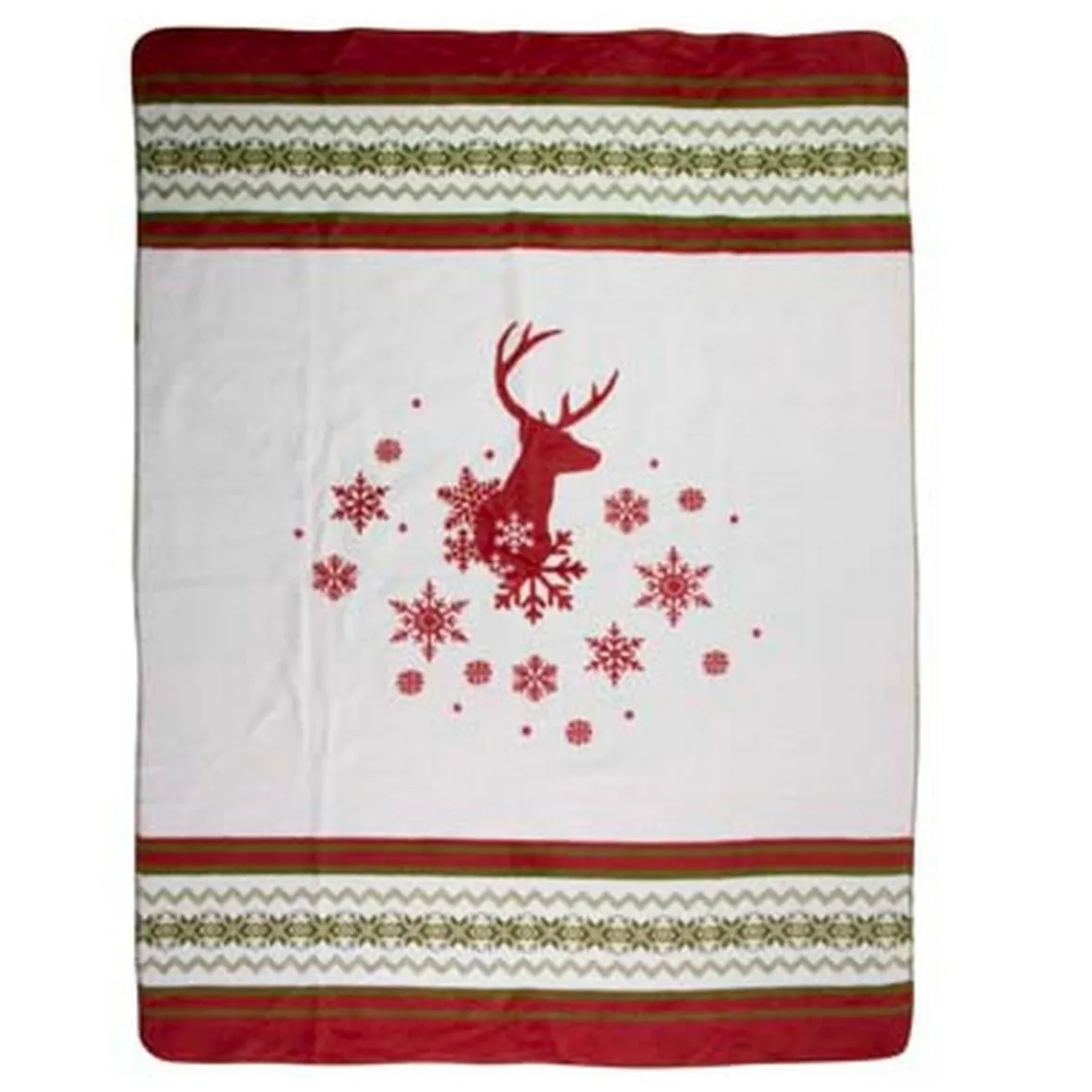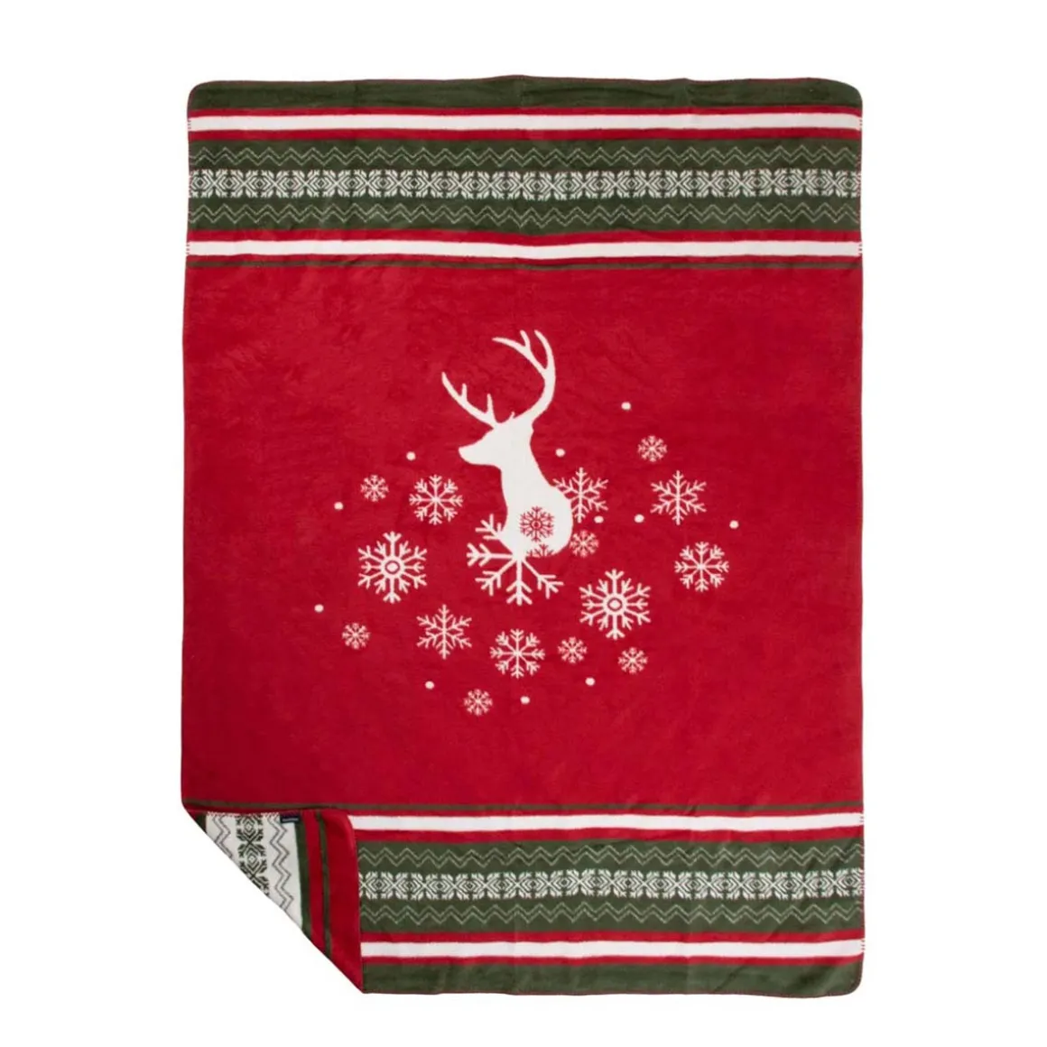 Diese kuschelige Fleecedecke mit Hirschmotiv bringt alpenländisches Wintergefühl direkt ins Wohnzimmer.